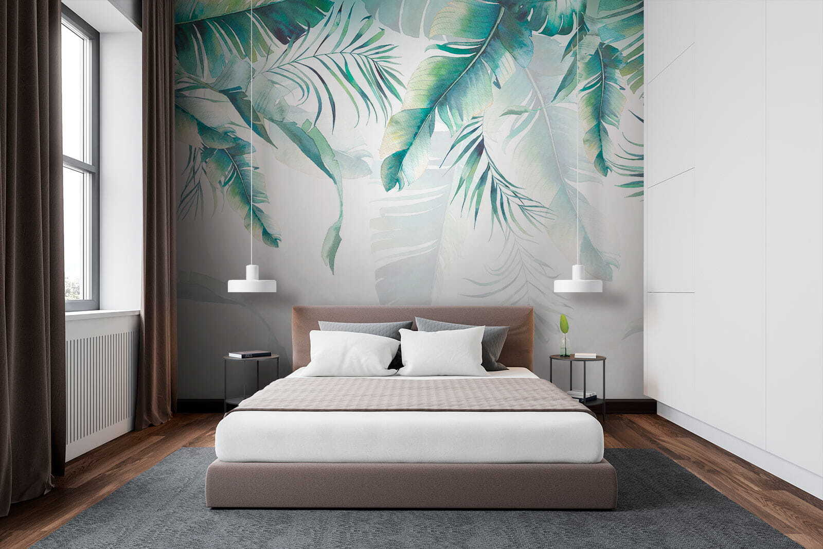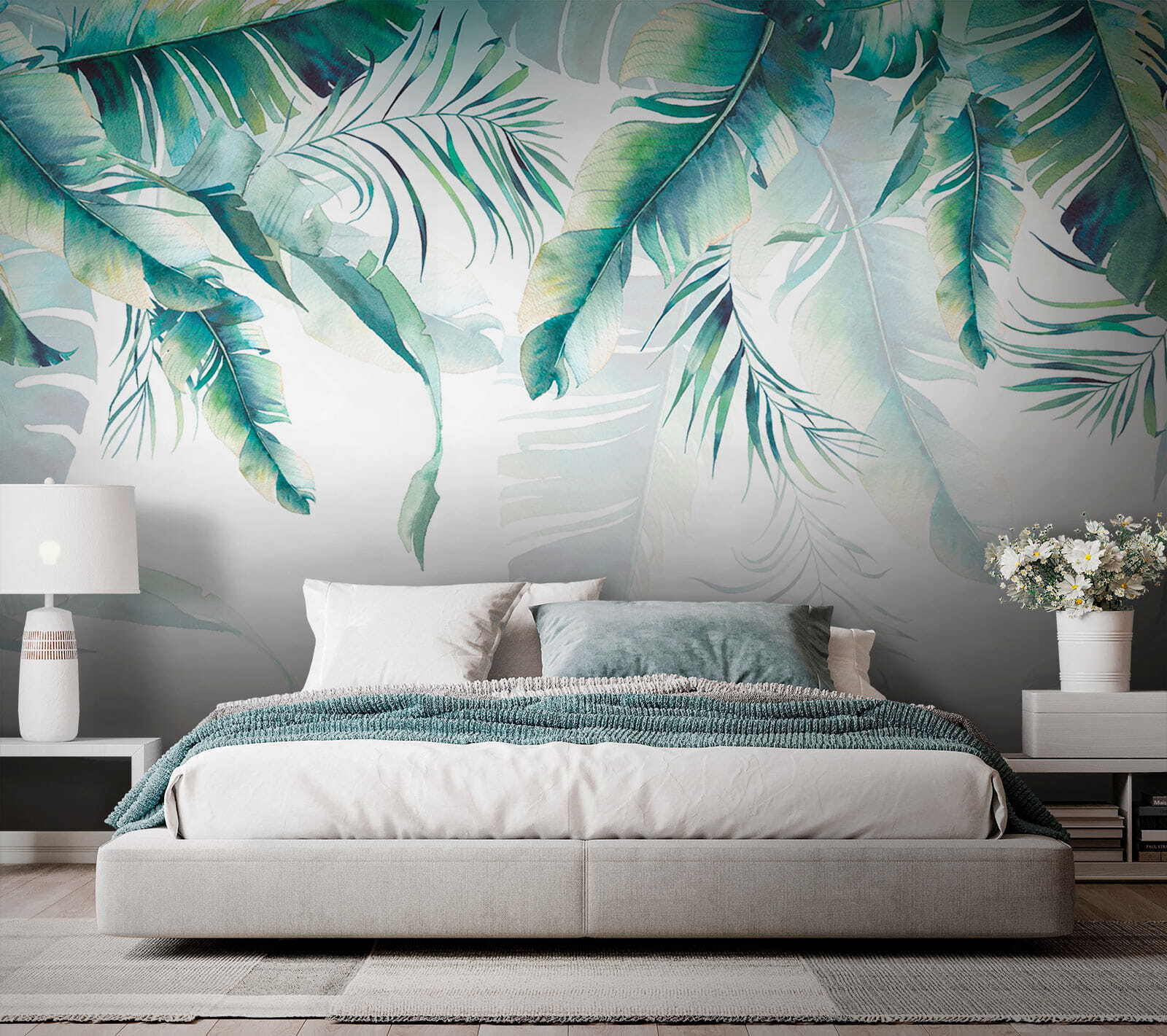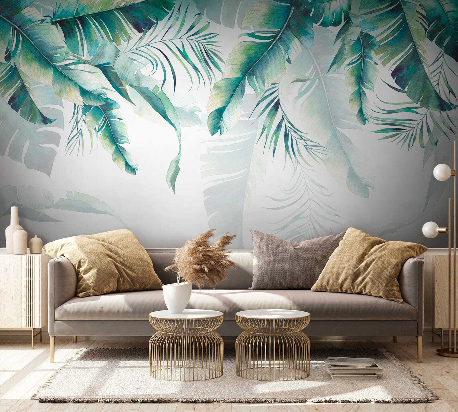 Stel je voor: je stapt een kamer binnen… en bam! Je wordt getransporteerd naar een weelderig, tropisch paradijs. Deze “Fotobehang Tropical Leaves” print is werkelijk betoverend. Het is alsof Moeder Natuur zelf een aquarelpenseel heeft gepakt en aan de slag is gegaan. Het levendige groen en het zachte blauw van de bladeren stralen ontspanning uit – perfect voor elke ruimte die een serene touch nodig heeft.