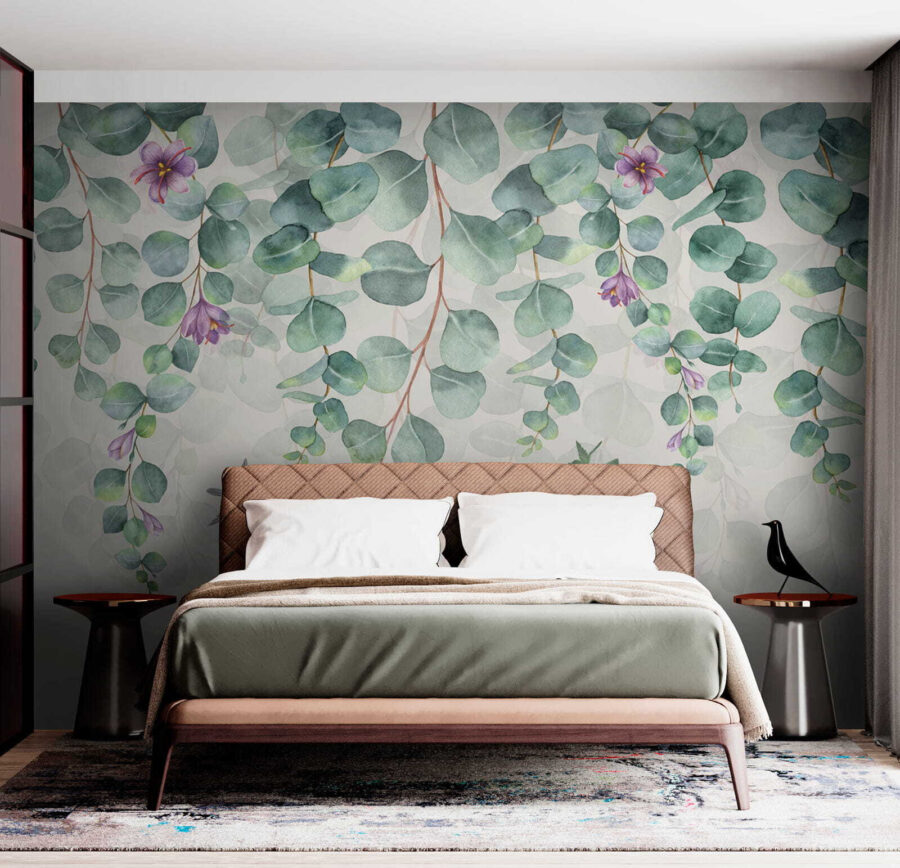 Stel je voor – je stapt een ruimte binnen die aanvoelt als een geheime tuin, gehuld in zacht groen en delicate paarse bloemen. Dat is precies de sfeer die “Fotobehang Purple flower with green leaves” in elke kamer brengt. Stel je het zachte wiegen voor van aquarelblaadjes en die grillige bloemetjes – alsof ze verhalen van rust en magie fluisteren. Of het nu een gezellig hoekje is of een lichte woonkamer, deze muurschildering brengt leven in de muren. En raad eens? Het is een zachte herinnering dat de schoonheid van de natuur ook in je huis kan zijn. Het is niet alleen decor, het is een stemming – ontspannen middagen, frisse vibes en dromerige dagdromen. Perfect voor wie een vleugje buiten wil, zonder de insecten!