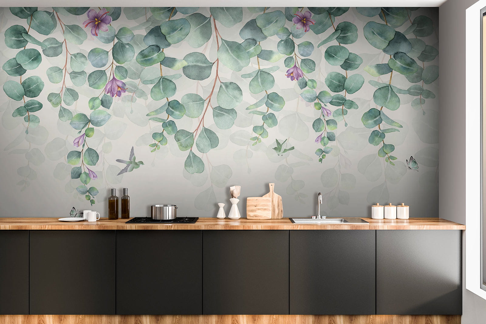Stel je voor – je stapt een ruimte binnen die aanvoelt als een geheime tuin, gehuld in zacht groen en delicate paarse bloemen. Dat is precies de sfeer die “Fotobehang Purple flower with green leaves” in elke kamer brengt. Stel je het zachte wiegen voor van aquarelblaadjes en die grillige bloemetjes – alsof ze verhalen van rust en magie fluisteren. Of het nu een gezellig hoekje is of een lichte woonkamer, deze muurschildering brengt leven in de muren. En raad eens? Het is een zachte herinnering dat de schoonheid van de natuur ook in je huis kan zijn. Het is niet alleen decor, het is een stemming – ontspannen middagen, frisse vibes en dromerige dagdromen. Perfect voor wie een vleugje buiten wil, zonder de insecten!