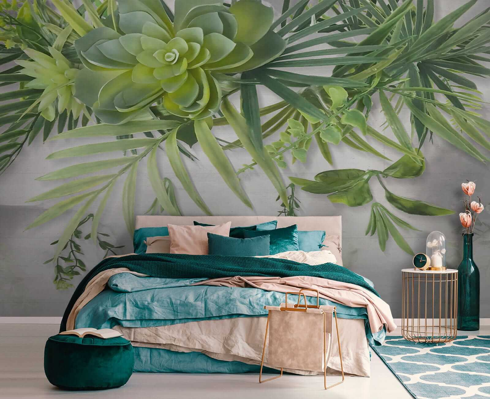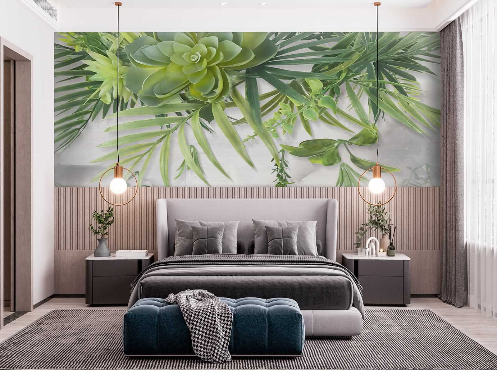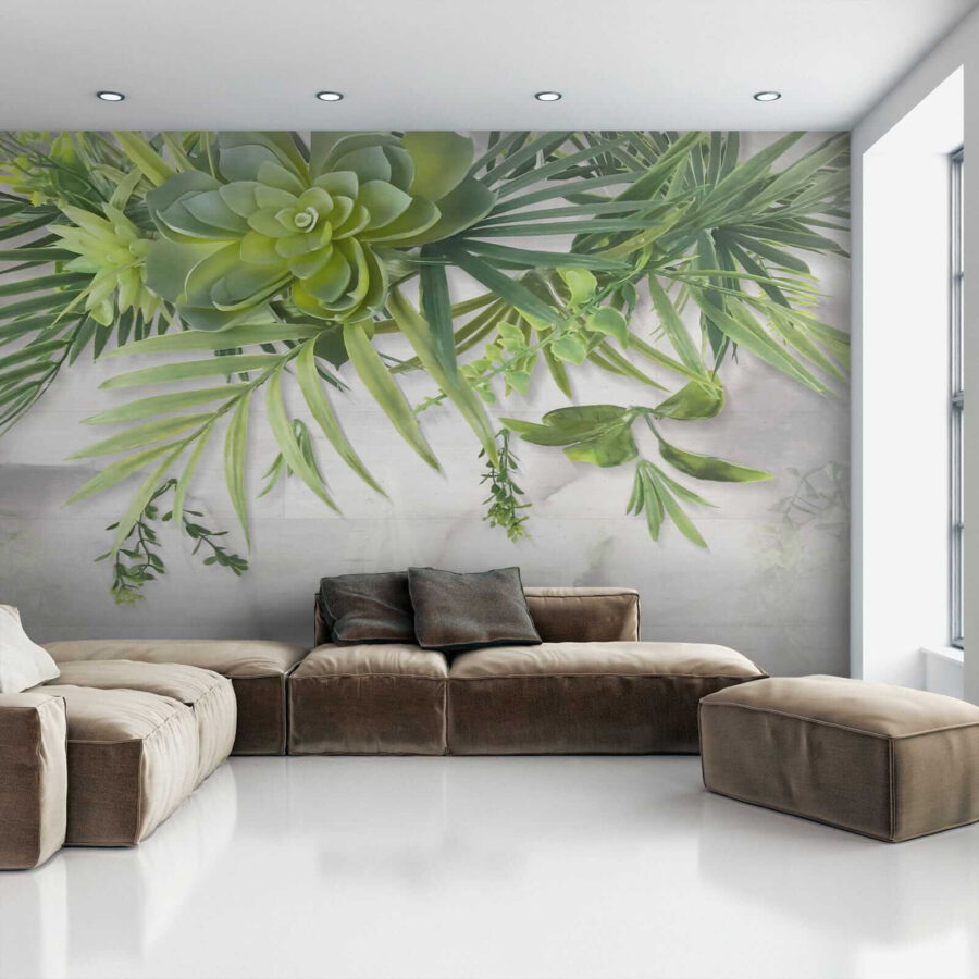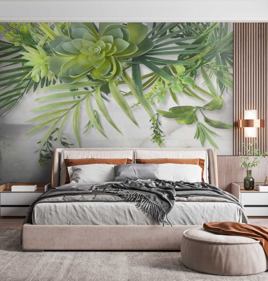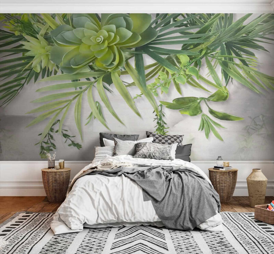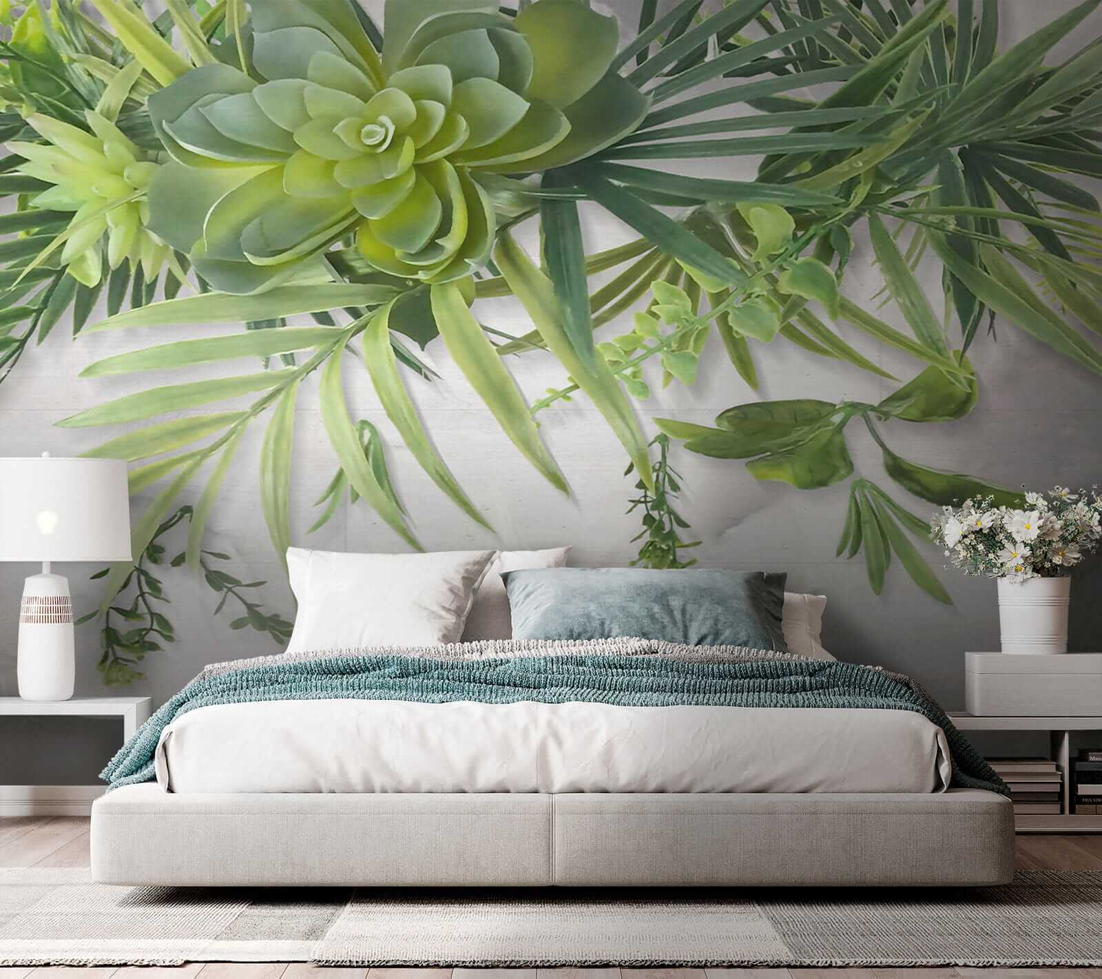 Stel je voor dat je ‘s ochtends aan je koffie nipt onder een groen bladerdak, zonder je woonkamer te verlaten! Deze “Fotobehang Green succulents and leafy branches overhead” transformeert elke ruimte in een weelderige, rustige ontsnapping. Die levendige vetplanten en tere bladertakken die erboven bungelen voelen bijna driedimensionaal aan. Het is perfect om een beetje natuur in te ademen, vooral als je een zwarte duim hebt (water geven is niet nodig!). Of je nu droomt van een stedelijke jungle in de stad of op zoek bent naar een verfrissend tintje voor je kamer met natuurthema – deze muurschildering is er voor jou. Het is alsof je een stukje botanische tuin in je huis hebt, zonder de vervelende insecten! Voeg direct zen toe aan elke kamer… en misschien een beetje afgunst van je vrienden.