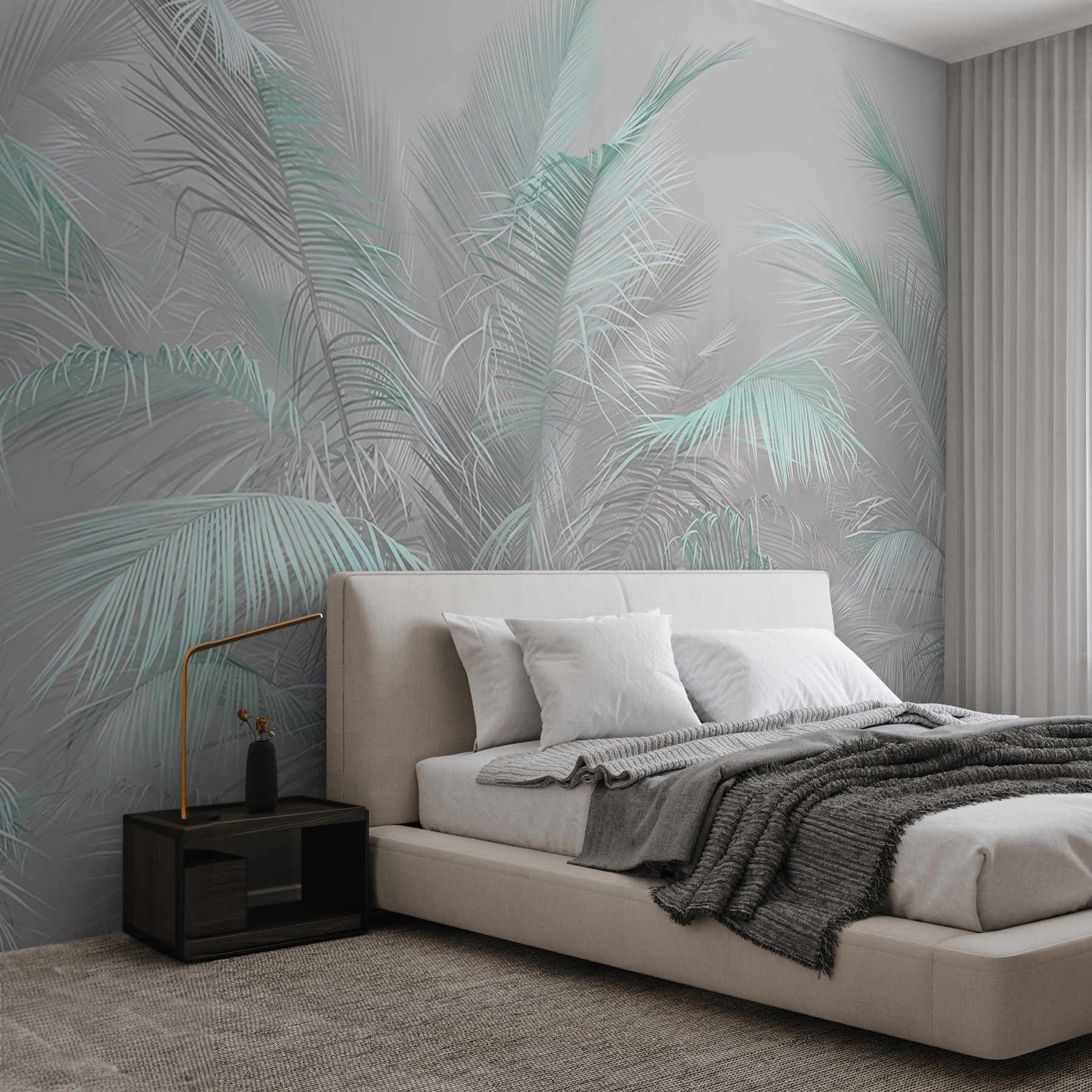 Ooit gedacht aan een tropisch paradijs in je woonkamer? Deze pastel palmbladeren muurschildering doet precies dat! Met zijn zachte mistige sfeer en rustgevende groentinten is het net alsof je een dromerige, serene tuin binnenstapt telkens als je een blik op je muur werpt. Stel je voor dat je na een lange dag thuiskomt, je schoenen uittrekt en begroet wordt door dit rustgevende vleugje natuur – instant ontspanning, toch?
