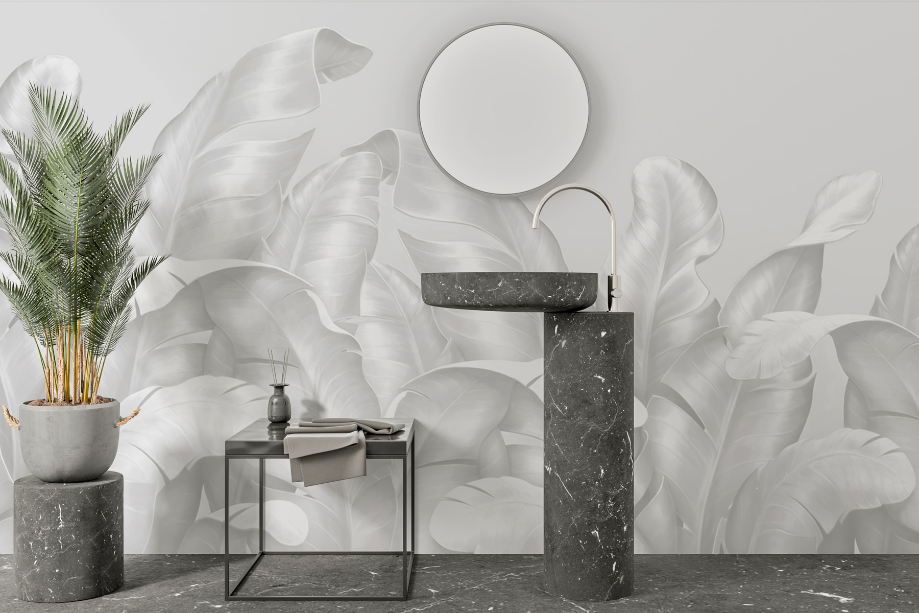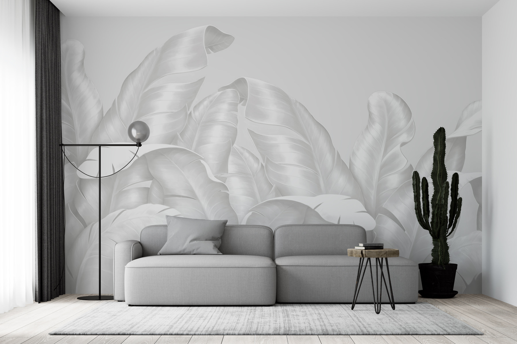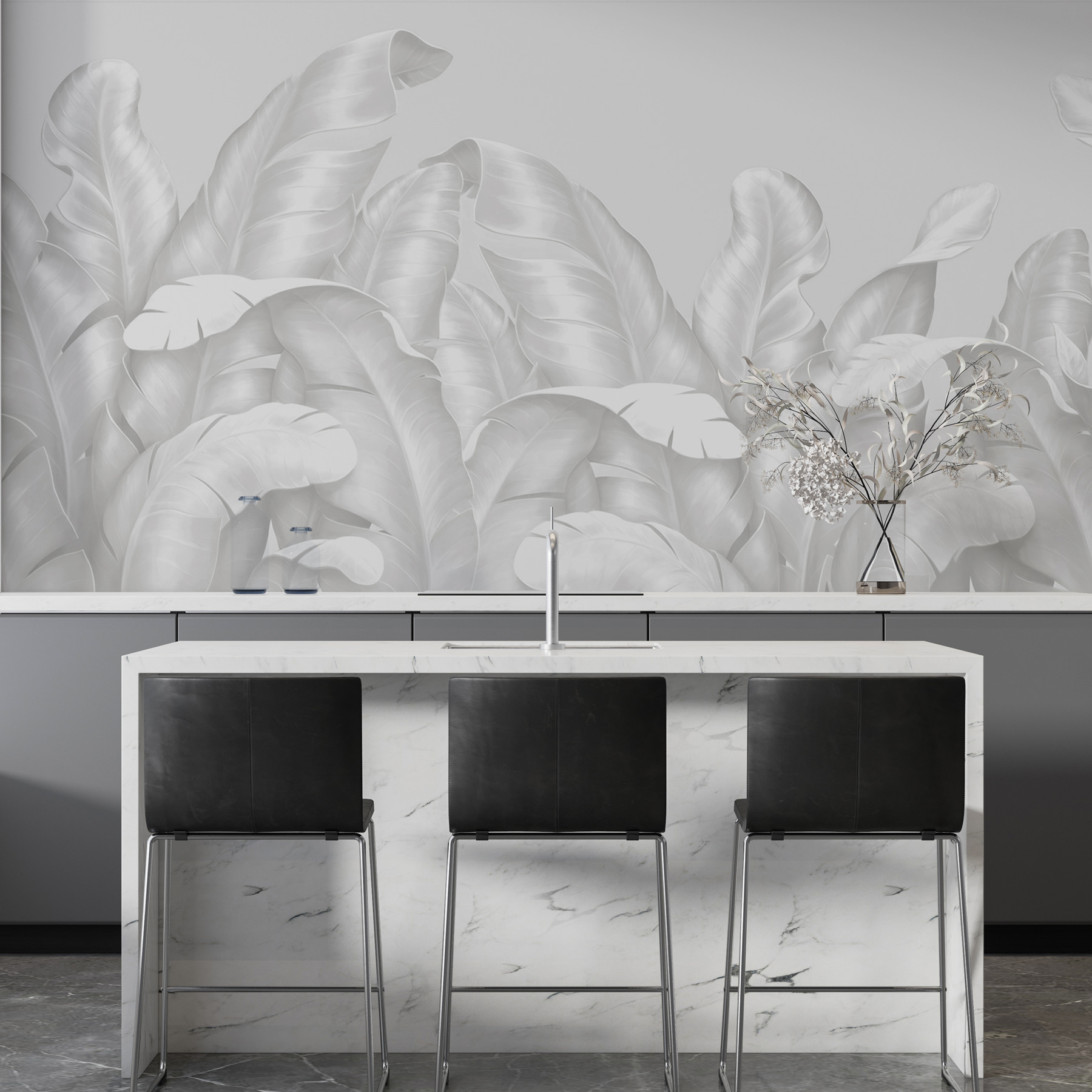 Verander een gewone muur in een prachtig meesterwerk met deze muurschildering met elegant gestileerd gebladerte. Het is net alsof je een jungle in je gezellige ruimte hebt zonder de gieter en vervelende insecten. De delicate bladeren creëren een luchtige sfeer, waardoor elke kamer fris en uitnodigend aanvoelt. Stel je voor dat je koffie drinkt terwijl je je koestert in de zachte texturen van dit ontwerp, of stel je voor dat vrienden een stoel bij je komen zitten om je fantastische smaak te bewonderen. De zachte look van deze muurschildering past bij elke interieurstijl, past er moeiteloos bij en valt tegelijkertijd op. Over een win-win gesproken!