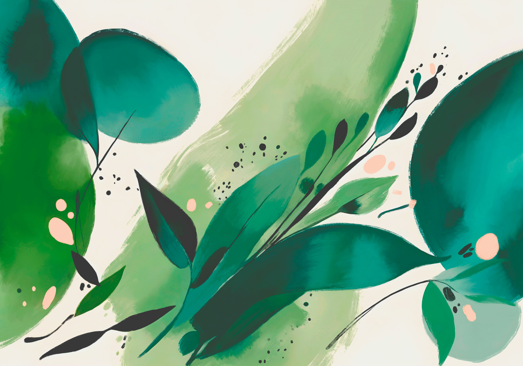 Heb je er ooit aan gedacht om wat leven en persoonlijkheid aan je effen muren te geven? Deze muurschildering, “Pink Circle on a White Surface”, zou wel eens de oplossing kunnen zijn! Het is als een frisse wind met zijn speelse mix van bladgroen en subtiel roze, verpakt in een mooie aquarelstijl. Stel je dit voor in je woonkamer – het zou zeker wat gesprekken losmaken. Plus, een beetje jungle vibes kan nooit kwaad, toch? Stel je voor dat je lekker wegkruipt met een boek, omringd door die weelderige bamboe en tropische elementen. Dat voelt gewoon goed. Transformeer je ruimte met een vleugje natuur, zonder de insecten.
