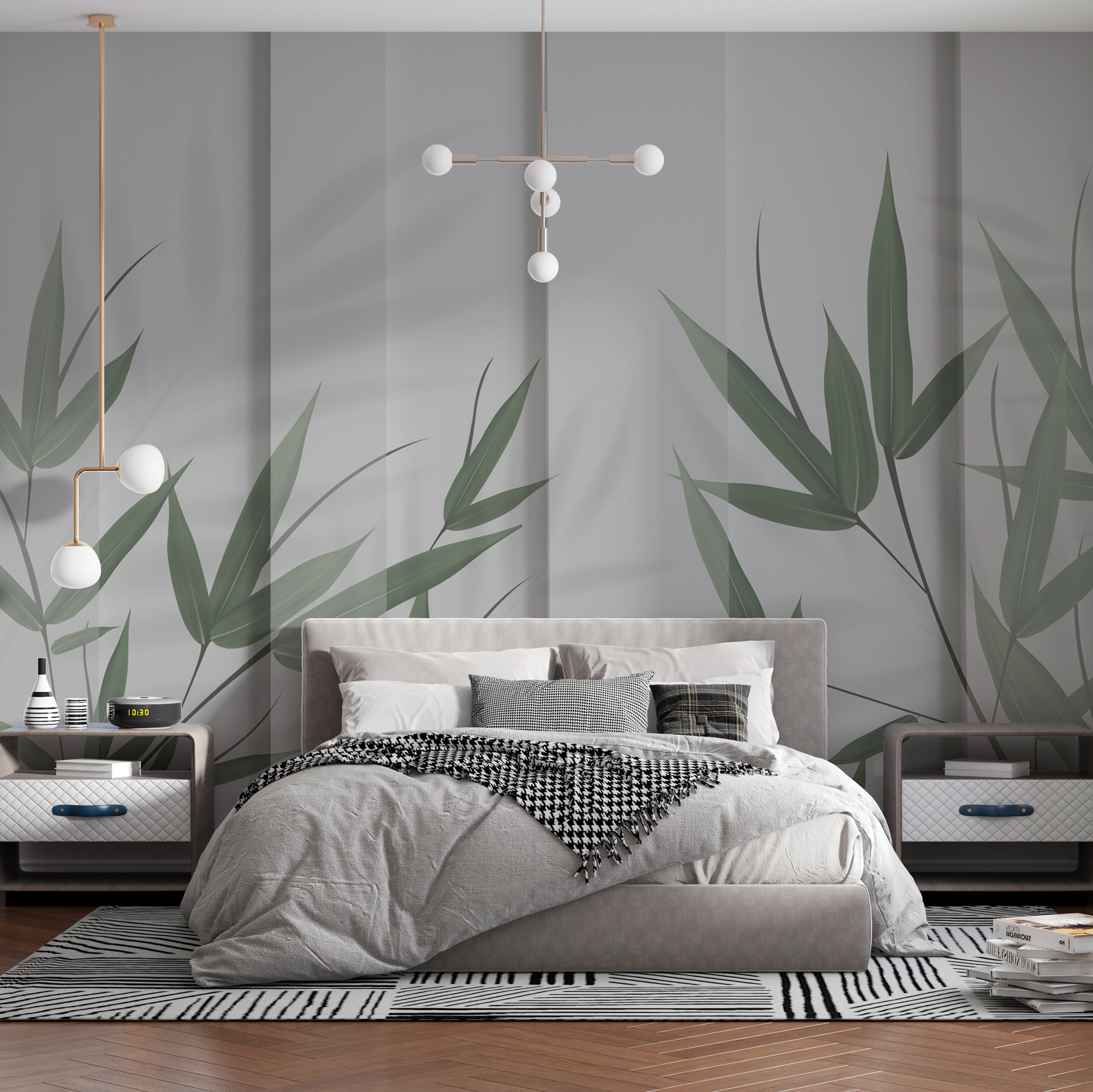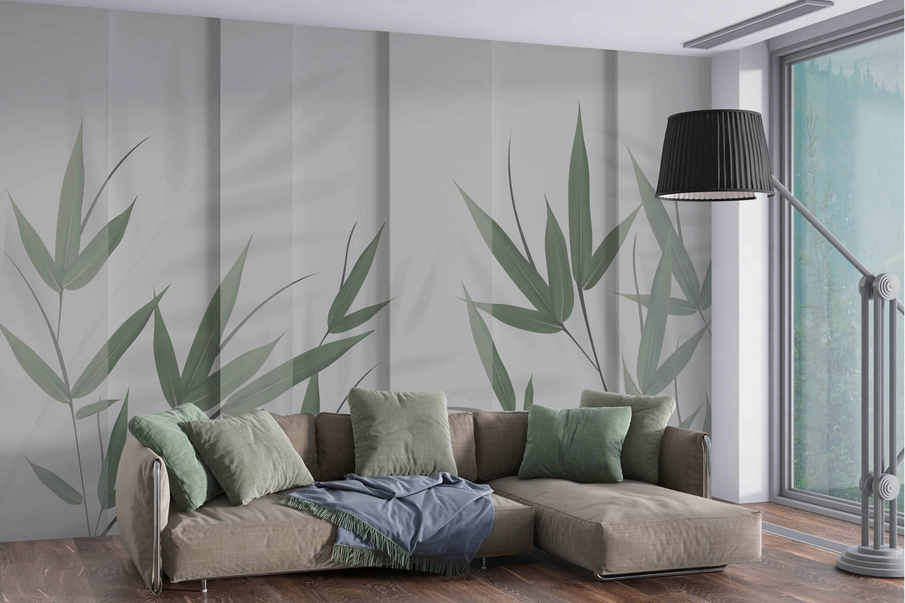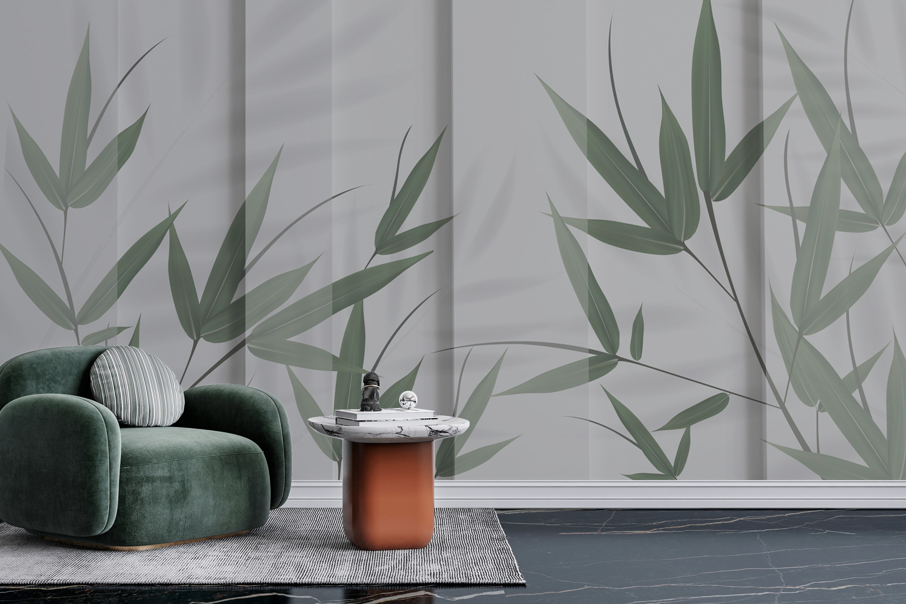 Stap in een serene oase met deze prachtige muurschildering “Green Leaves and Shadows”. Stel je weelderige bamboebladeren voor die zachtjes schaduwen werpen op zachte stof – het is alsof je een vredige tuin in je kamer hebt. Dit is niet zomaar een muurschildering; het is een stukje rust. Perfect voor een zen-hoekje, slaapkamer of waar je maar een beetje groene therapie kunt gebruiken. Het eigentijdse ontwerp past naadloos in elk interieur en het 3D-effect voegt precies de juiste diepte toe. Je voelt bijna een licht briesje door de bladeren ritselen. Adem rustig in – je ruimte is een stuk vrediger geworden!