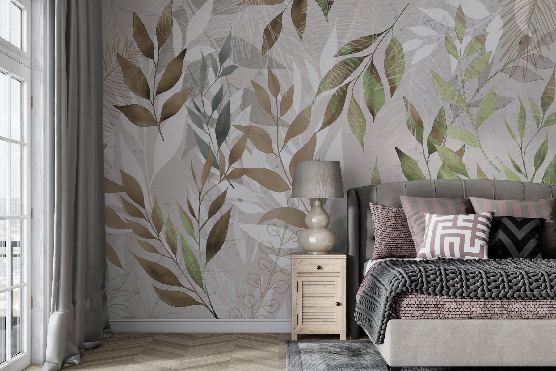 Stel je voor dat je een kamer binnenstapt en onmiddellijk omringd wordt door een zachte, bladerrijke omhelzing. Deze muurschildering “Leafy Branches in a Delicate Pattern” doet precies dat – transformeert je ruimte in een sereen, door de natuur geïnspireerd toevluchtsoord. Het chique, subtiele 3D-effect zorgt ervoor dat de takken bijna van de muur af springen, alsof je in een rustig bos bent, maar dan met een stijlvolle uitstraling. Perfect voor elke kamer die een extra vleugje elegantie en warmte nodig heeft.
