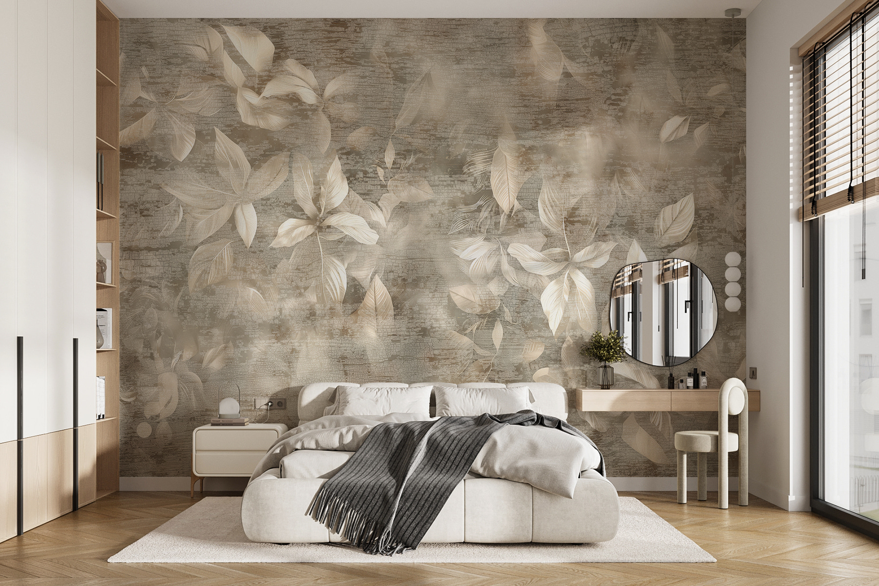 Tover elke kamer om in een serene oase met deze muurschildering met elegante bladeren op een opvallende achtergrond. Het is alsof je een stil bos in huis hebt. Stel je voor dat je ‘s ochtends aan je koffie nipt of lekker wegkruipt met een boek terwijl zacht groen je muren serenadeert. De zachte patronen roepen een gevoel van rust op, waardoor het perfect is om gezellig in een leeshoekje te zitten of om leven te brengen in een saaie gang. Bovendien is het een geweldige gespreksstarter – iedereen zal willen weten waar die prachtige muur vandaan komt. Geef je ruimte de opfrisbeurt die het verdient!