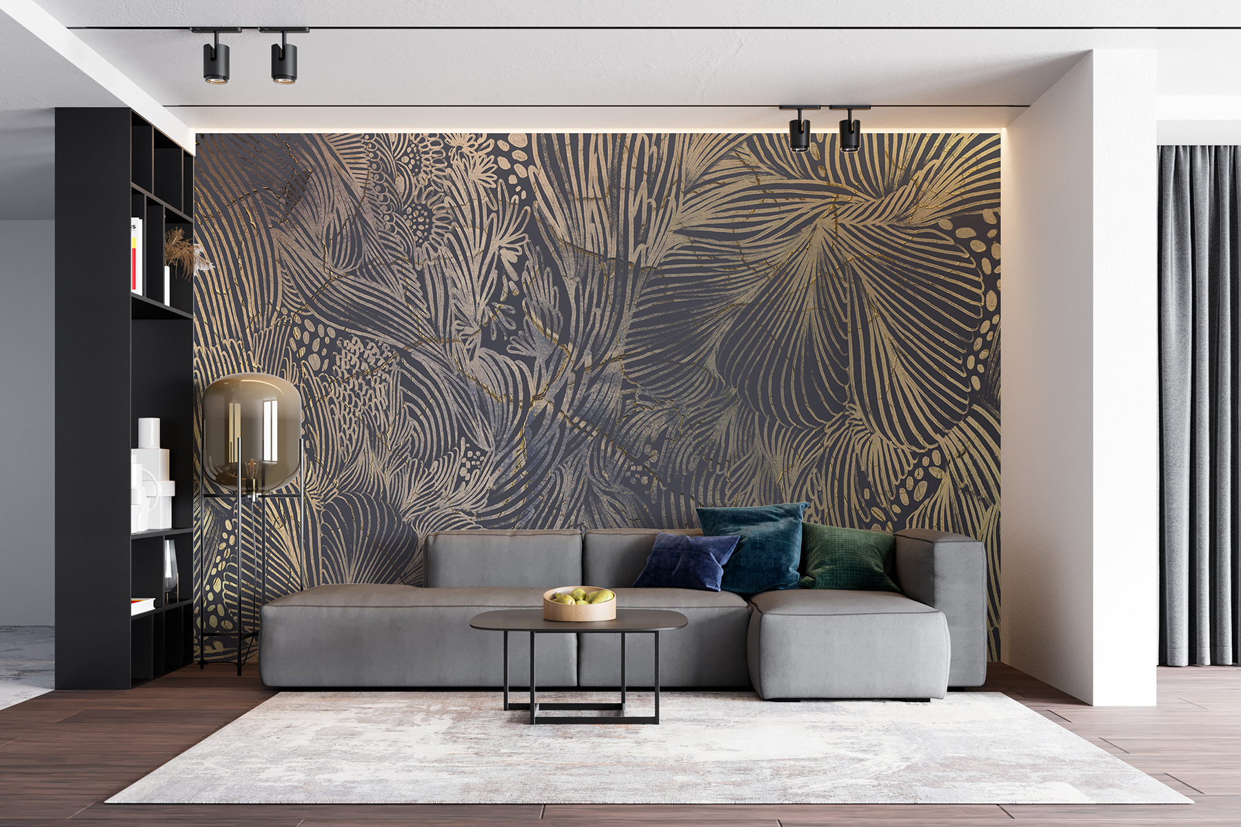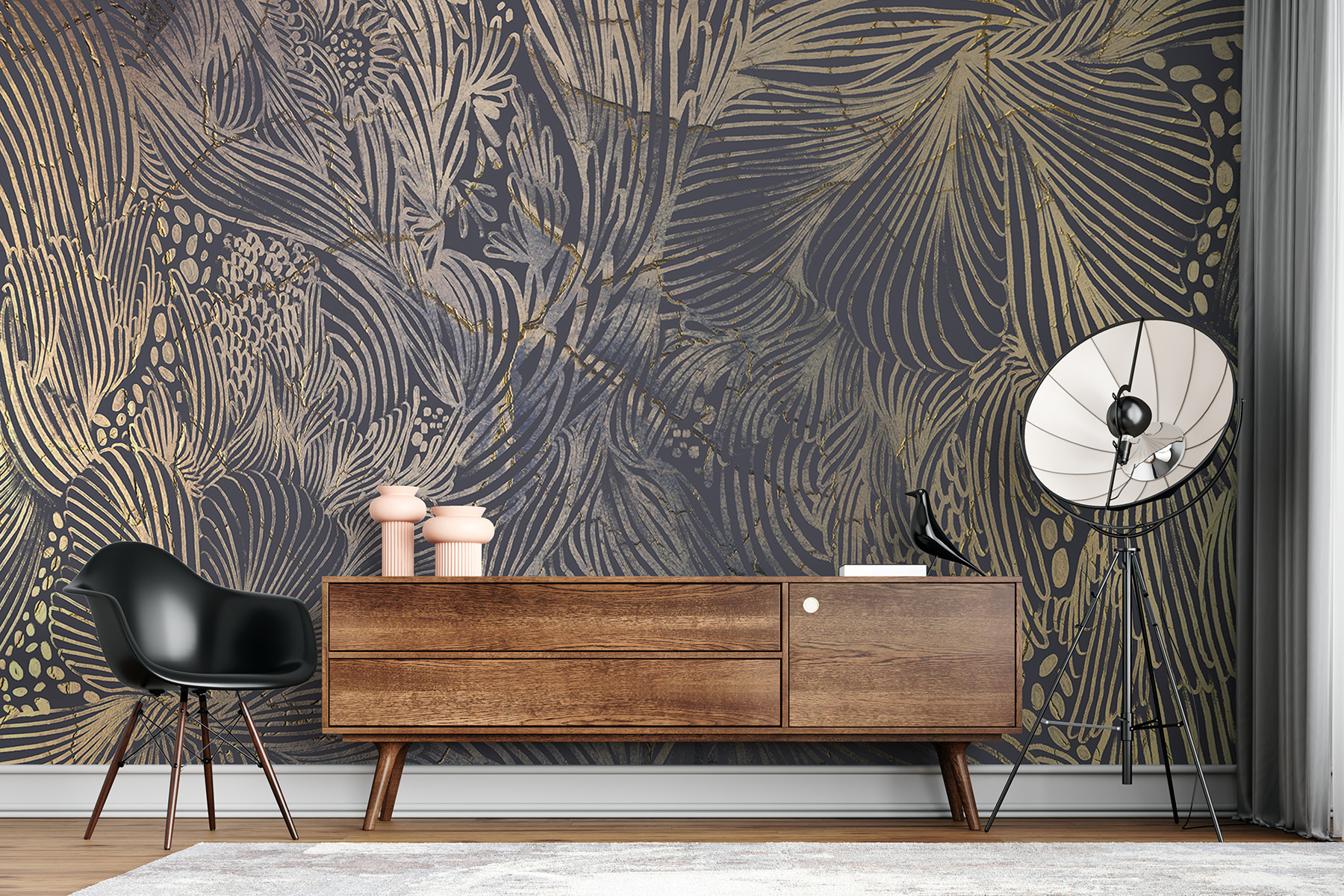 Verander een effen muur in een prachtig middelpunt met deze elegante botanische muurschildering in donkere tinten. Stel je eens voor dat je een ruimte binnenstapt waar ingewikkelde bladmotieven je kamer omringen met een vleugje verfijning uit de natuur. Het is alsof je het bos naar binnen haalt, zonder de insecten natuurlijk. De rijke kleuren creëren een gezellige sfeer, perfect om lekker in weg te kruipen met een boek of om vrienden te ontvangen. Bovendien voegen de vloeiende patronen een beetje drama toe, waardoor elke blik voelt als een mini-ontsnapping. Wie wil er nu niet een dagelijkse dosis botanische gelukzaligheid thuis?