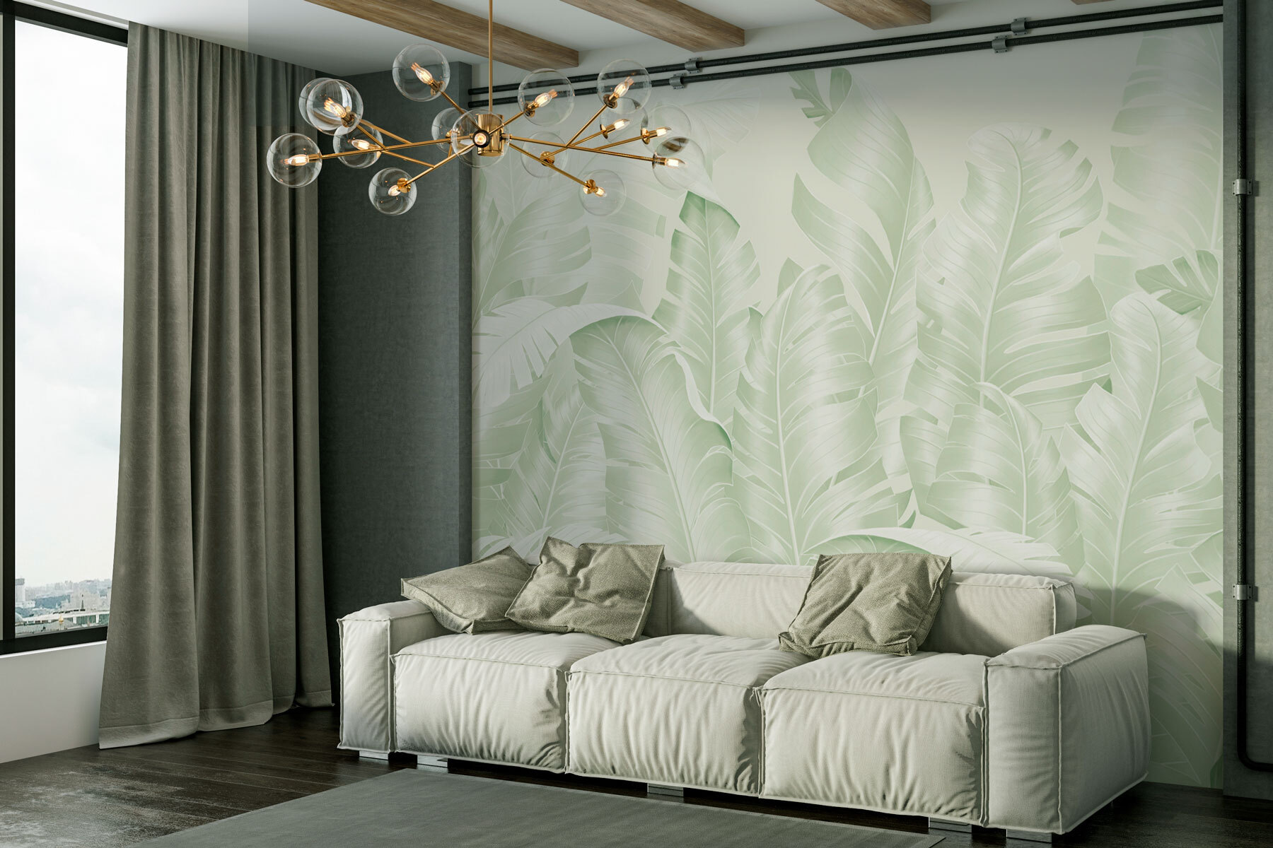 Verander je ruimte in een serene oase met deze charmante muurschildering met een weelderige groep bladeren tegen een zacht witte achtergrond. Elke keer dat je de kamer binnenloopt, waan je je in een tropisch oord. Het zachte groen en wit creëren een rustgevende sfeer, perfect om tot rust te komen na een lange dag. Het is alsof je een stukje natuur aan de muur hebt hangen, waardoor de kamer groter en uitnodigend aanvoelt. Vrienden zullen zich afvragen of je een geheime tuin hebt. Bovendien past het prachtig bij elke interieurstijl. Stel je voor dat je hier koffie drinkt, omringd door de rust van de natuur – pure gelukzaligheid!