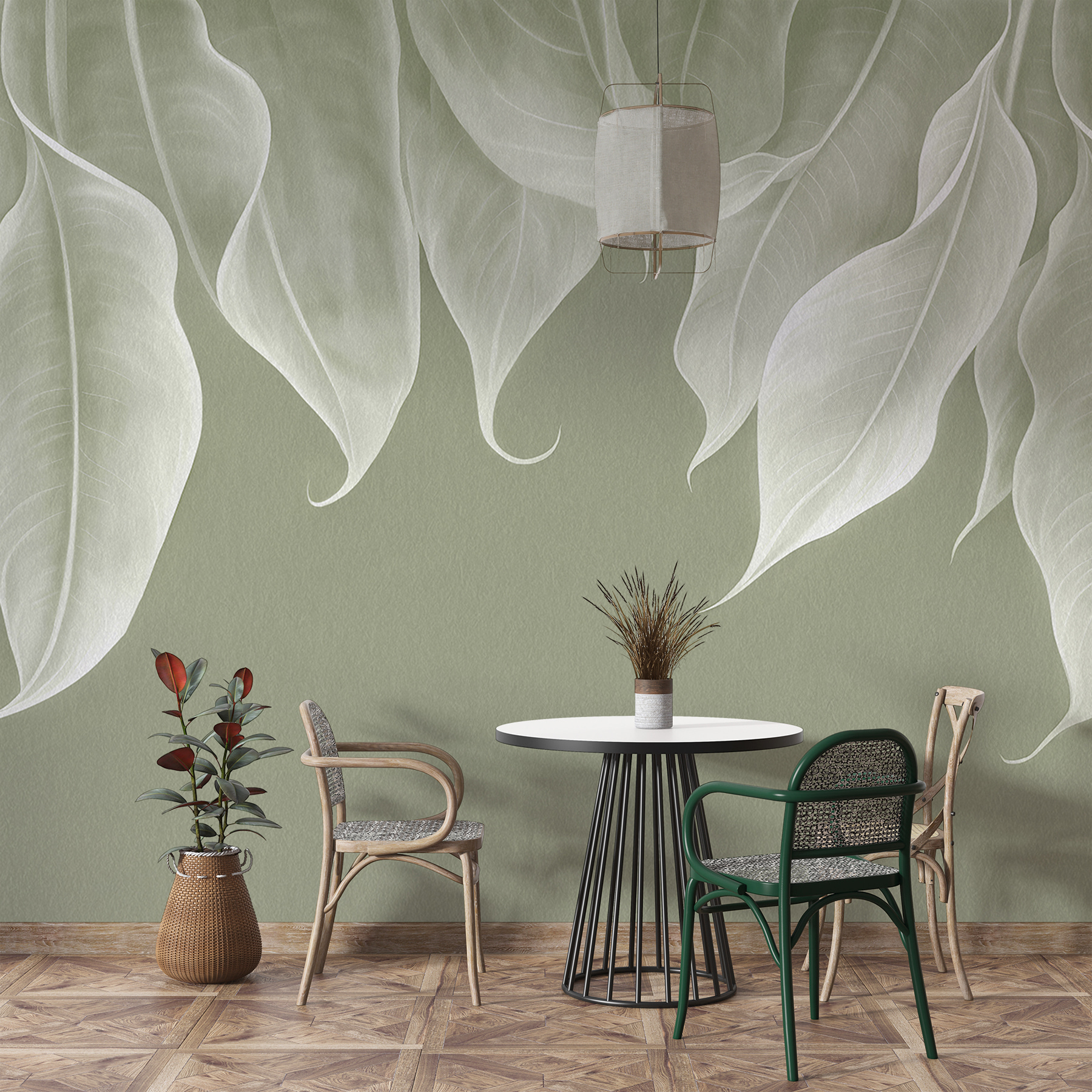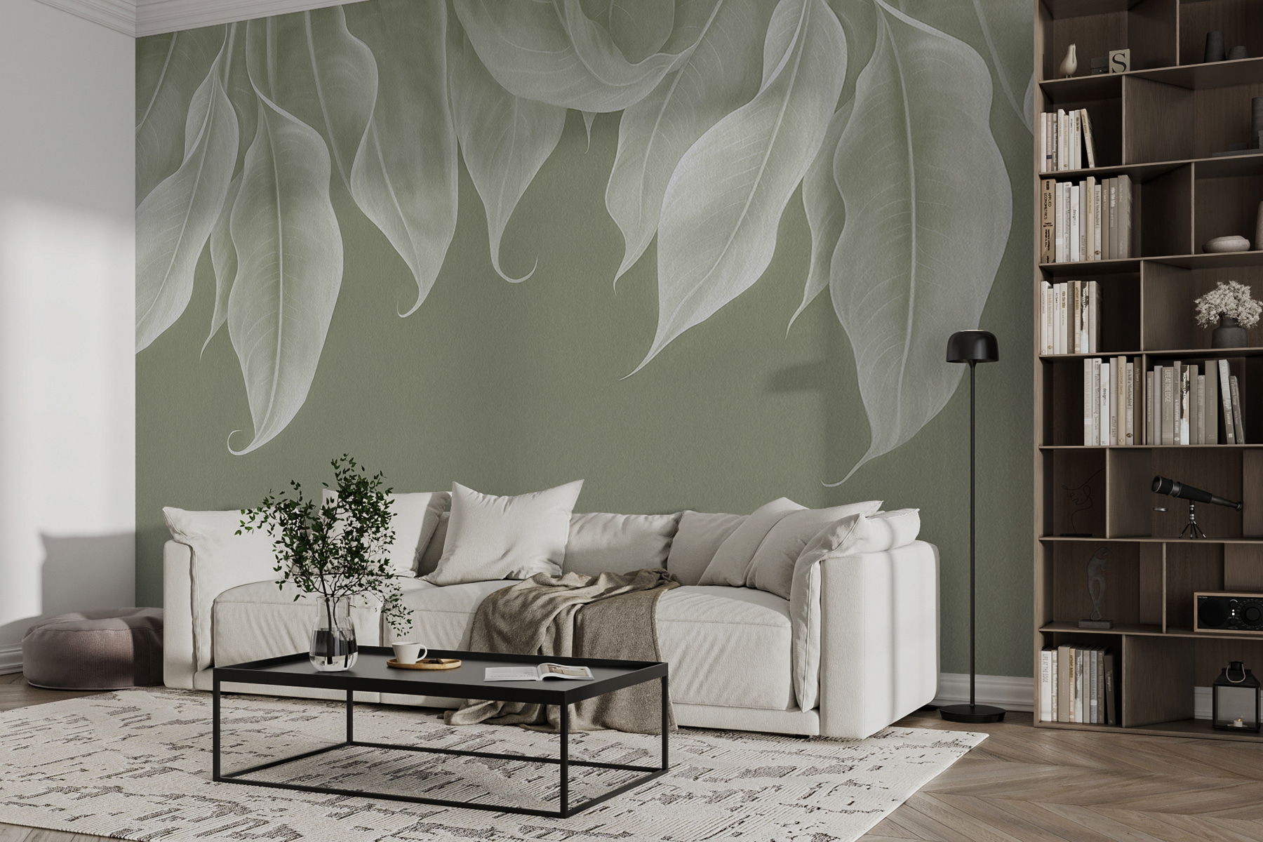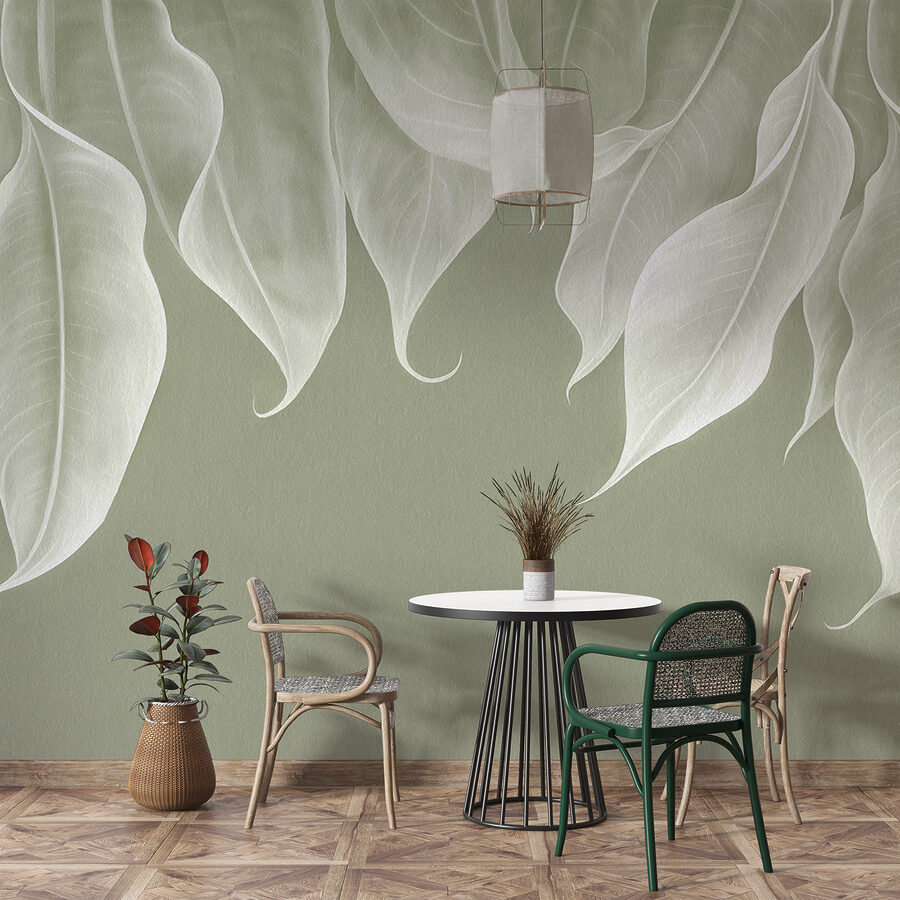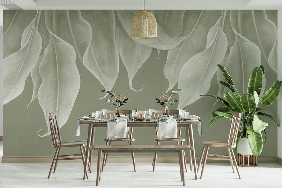 Heb je wel eens het gevoel dat je muren een beetje te kaal zijn en verlangen naar een beetje persoonlijkheid? Kies dan voor de “Elegante golven van monochroom gebladerte”. Deze muurschildering is niet zomaar een decorstuk, het is een sfeer. Stel je een zacht briesje voor dat door een bosje bladeren ruist, waarbij elk blad speciaal voor jou lijkt te dansen. Als je deze muurschildering in je kamer plaatst, is het net alsof je een serene wandeling door het park binnenshuis maakt. Bovendien zou het wel eens een dromerige zucht kunnen ontlokken, die van jou of van je vrienden. Schrik niet als je ‘s ochtends zit te treuzelen bij de koffie, verloren in zijn elegante allure. Perfect voor iedereen die houdt van de natuur met een vleugje chic!