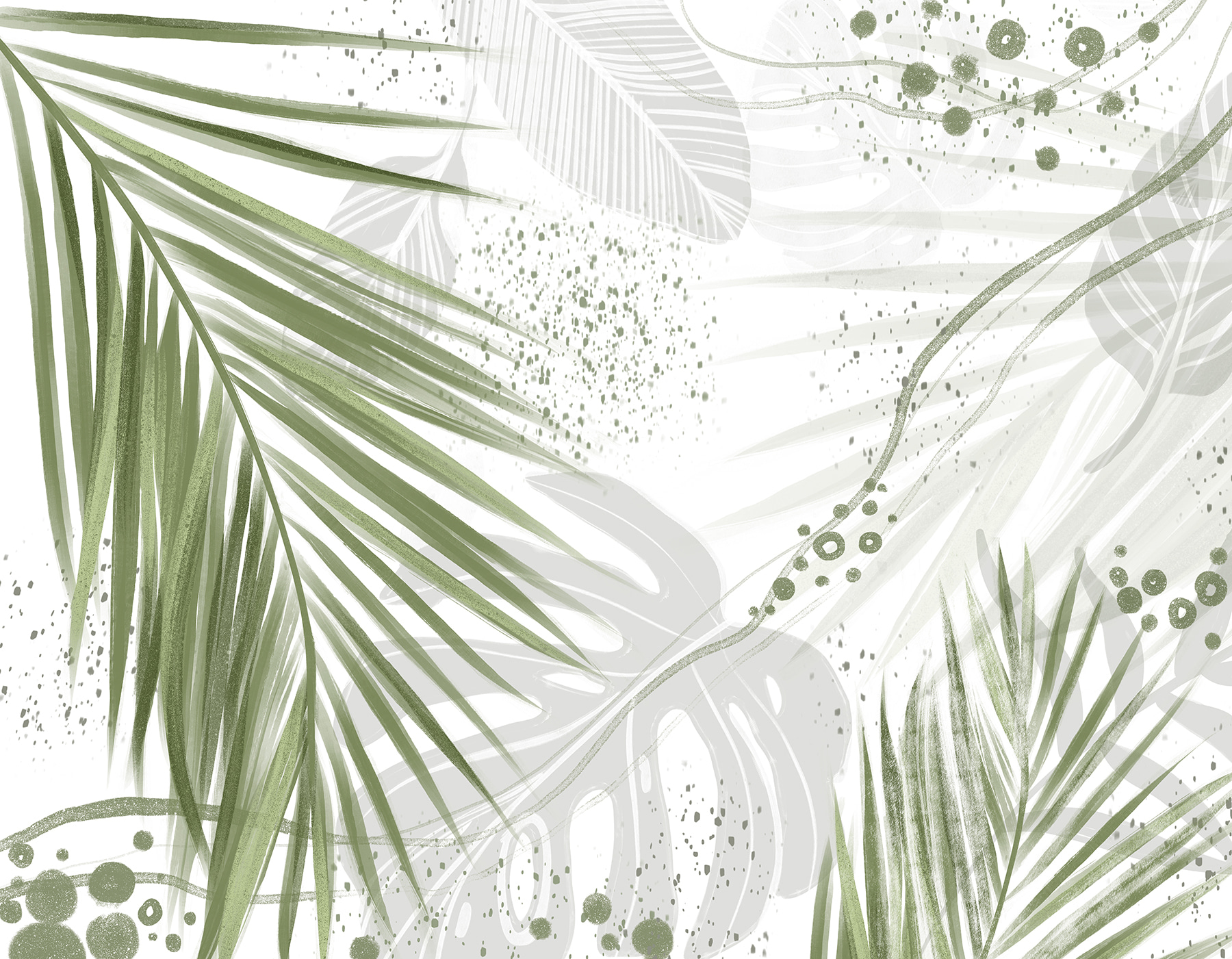 Tover elke ruimte om in een tropische oase met de Fotobehang Abstract Brushstrokes and Palm Fronds. Stel je voor dat je in een wereld stapt waar levendige palmbladeren op je muren dansen en een frisse, luchtige sfeer in je woon- of slaapkamer brengen. Het groen vermengt zich met subtiele penseelstreken en creëert een zachte achtergrond die zowel energiegevend als ontspannend aanvoelt – perfect om bij weg te dromen of je volgende avontuur te plannen. Het is net alsof je thuis op vakantie bent, zonder zonnebrand. Dus hang het op, leun achterover en laat de goede vibes rollen. Wie heeft er een vliegticket nodig als je gewoon je eigen paradijs kunt binnenwandelen?