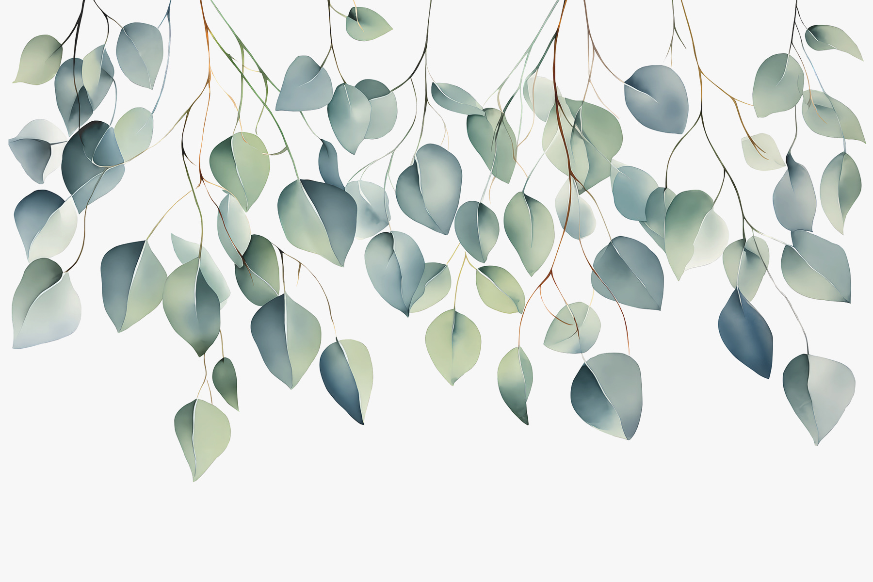 Stel je voor dat je een kamer binnenstapt die aanvoelt als een warme, winderige namiddag. Deze muurschildering met eucalyptusbladeren in een zachte waterval geeft elke ruimte een verfrissend tintje. De zachte groene tinten spelen mooi met het licht, waardoor het een rustgevende achtergrond is voor gezellige bijeenkomsten of een ontspannen middagje lezen. Stel je een zonnige dag in je woonkamer voor, waar de bladeren subtiel op de muur dansen en de natuur binnenhalen. Het is perfect om je muren om te toveren in een rustig toevluchtsoord. Zet er een comfortabele stoel, een goed boek en misschien een kopje thee bij en je hebt je eigen stukje paradijs. Een echte gespreksstarter!