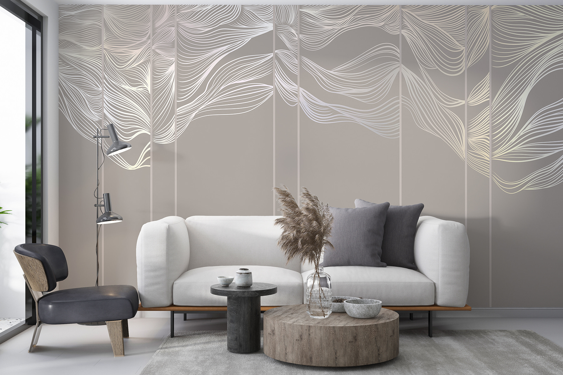 Fotobehang Elegante golven in monochrome tinten (SKU: w08263)
