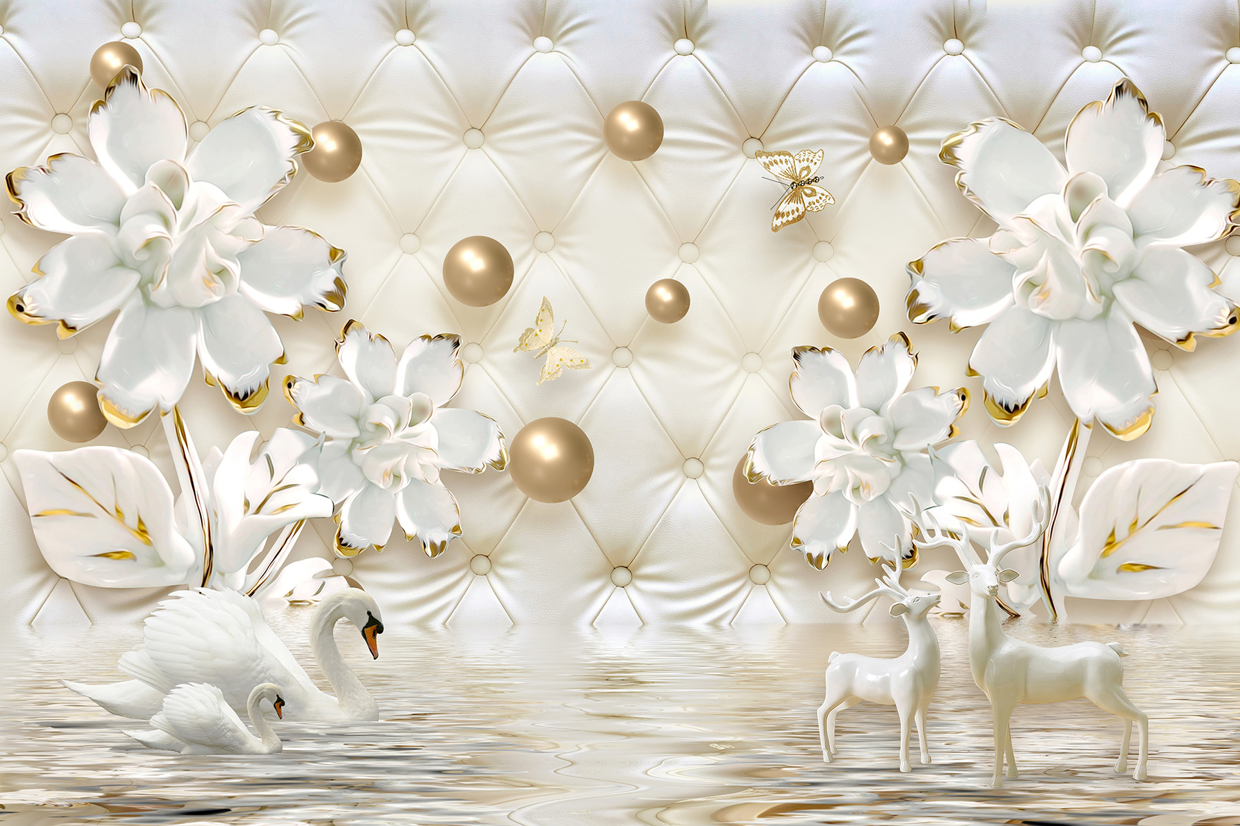 Transformeer elke ruimte met deze betoverende muurschildering met een wit beeld van een hert te midden van een dromerige achtergrond. Stel je voor dat je een kamer binnenloopt waar elegantie samenkomt met de charme van de natuur – die weelderige bloemen en zwanenparen geven je gewoon een speciaal gevoel. Het is als een serene ontsnapping bij je thuis. Perfect voor een woonkamer of zelfs een gezellig leeshoekje, het nodigt uit tot complimenten en nieuwsgierige gesprekken. Stel je voor dat iemand het bewondert terwijl hij koffie drinkt en een kalm gevoel over zich heen krijgt. Een vleugje eigenzinnigheid dat het hart verwarmt en de sfeer opvrolijkt – het wordt vast en zeker een favoriete plek in elk huis.