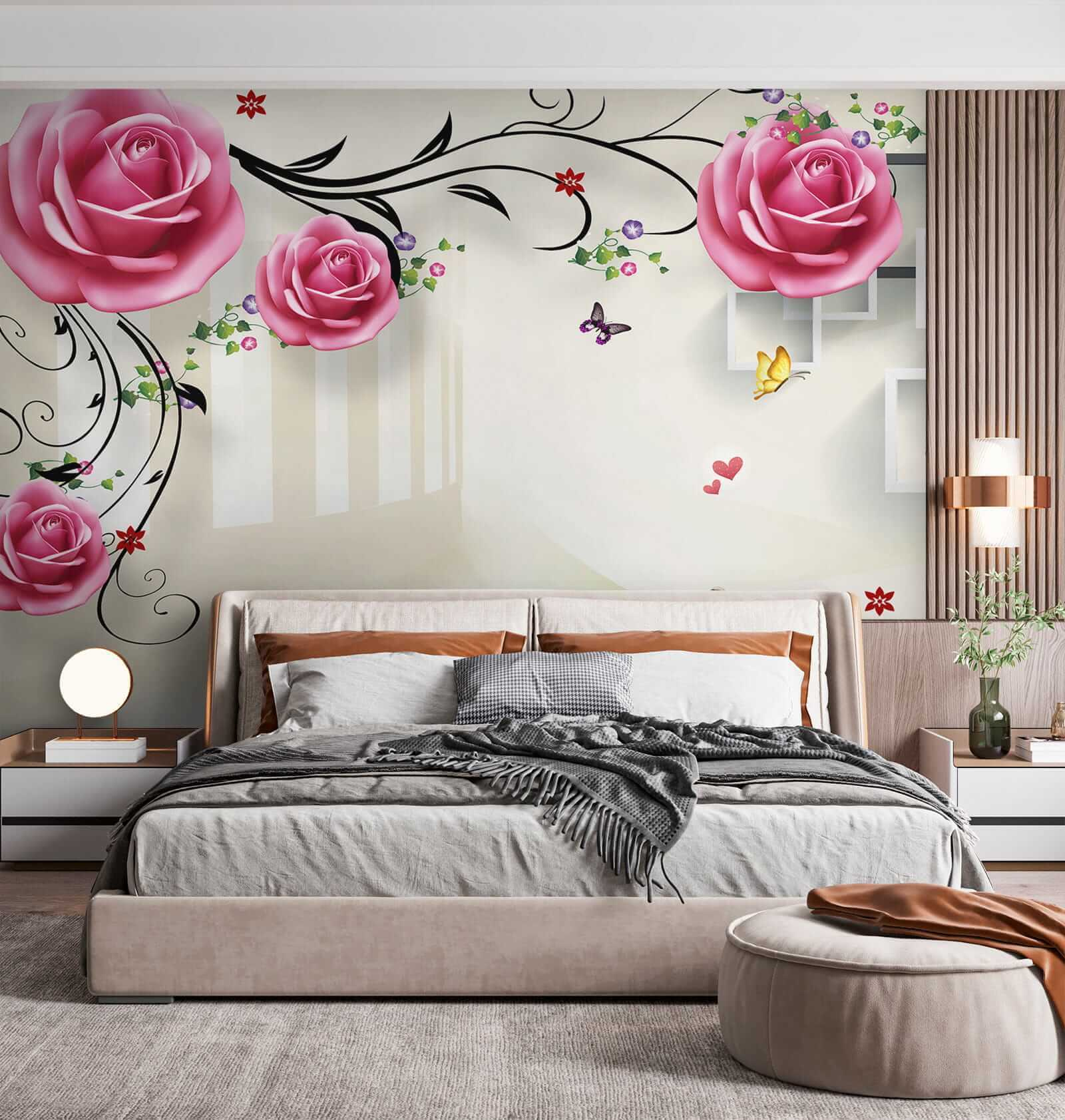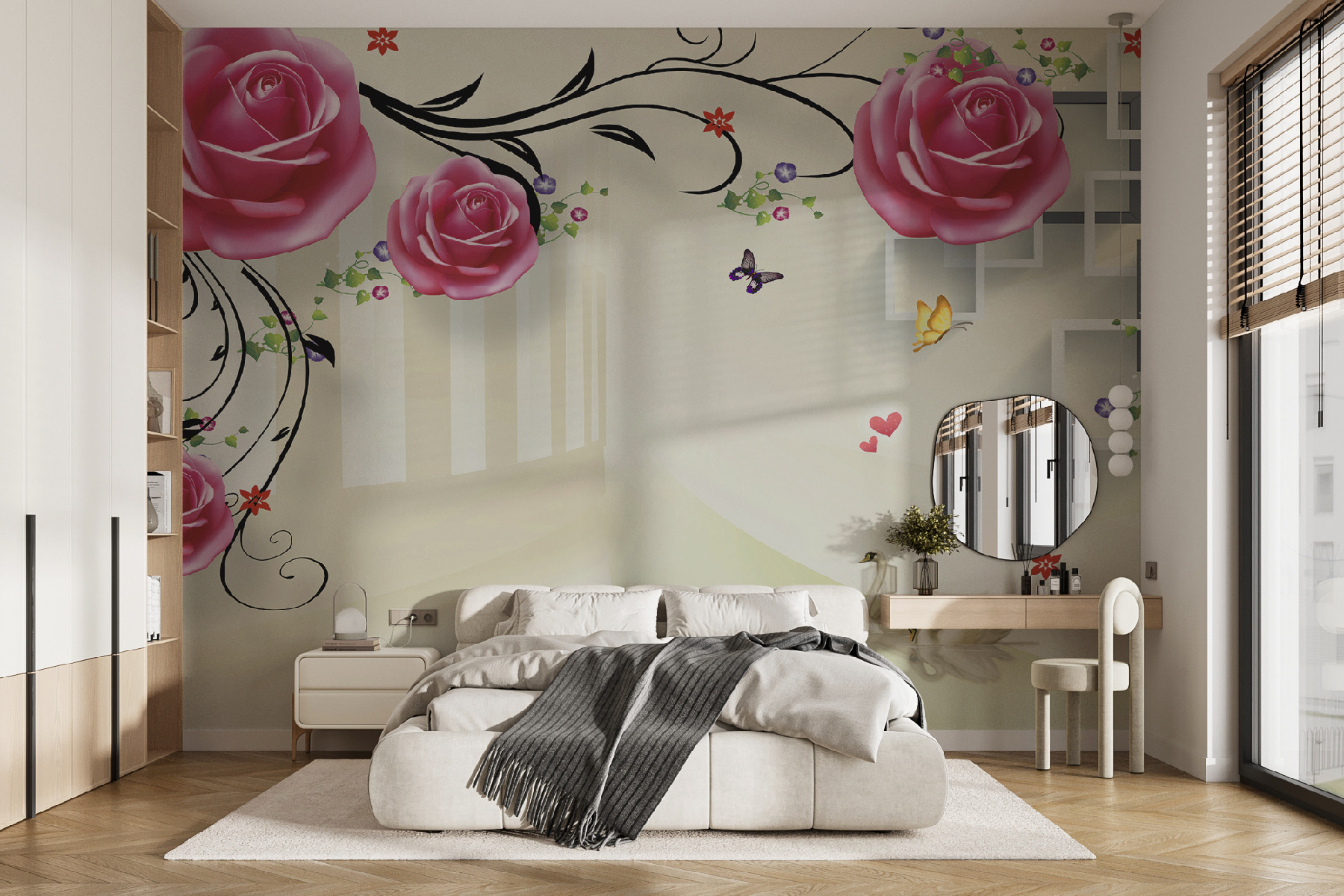 Stel je voor dat je elke dag wakker wordt met deze betoverende muurschildering. Het is alsof je een dromerige tuin binnenstapt! Zwanen die gracieus onder bloeiende roze rozen glijden en vlinders die rondfladderen geven je ruimte een vleugje serene magie. Perfect voor iedereen die een stukje natuur in huis wil halen met een vleugje elegantie. En die rozen – het lijkt wel of je ze kunt aanraken!
