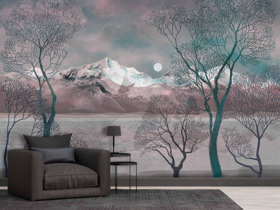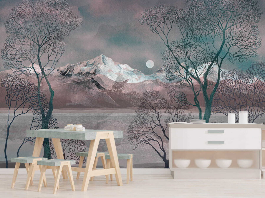 Transformeer elke ruimte met deze prachtige muurschildering, “Landschap met bomen en bergen”. Het is alsof je de natuur binnenhaalt, maar dan zonder de vervelende insecten! Stel je voor dat je de zon achter de bergen ziet verschijnen en zachte schaduwen werpt terwijl de bomen zachtjes wuiven in de wind. De kleuren stralen rust uit, waardoor het perfect is voor een gezellig leeshoekje of zelfs een levendige ontmoetingsplaats – iedereen zal erover willen praten! Het voegt diepte en karakter toe, wat geweldig is, want wie wil er nu saaie muren? Dus ga je gang, laat deze muurschildering de blikvanger zijn die iedereen even de adem beneemt, al is het maar voor even!
