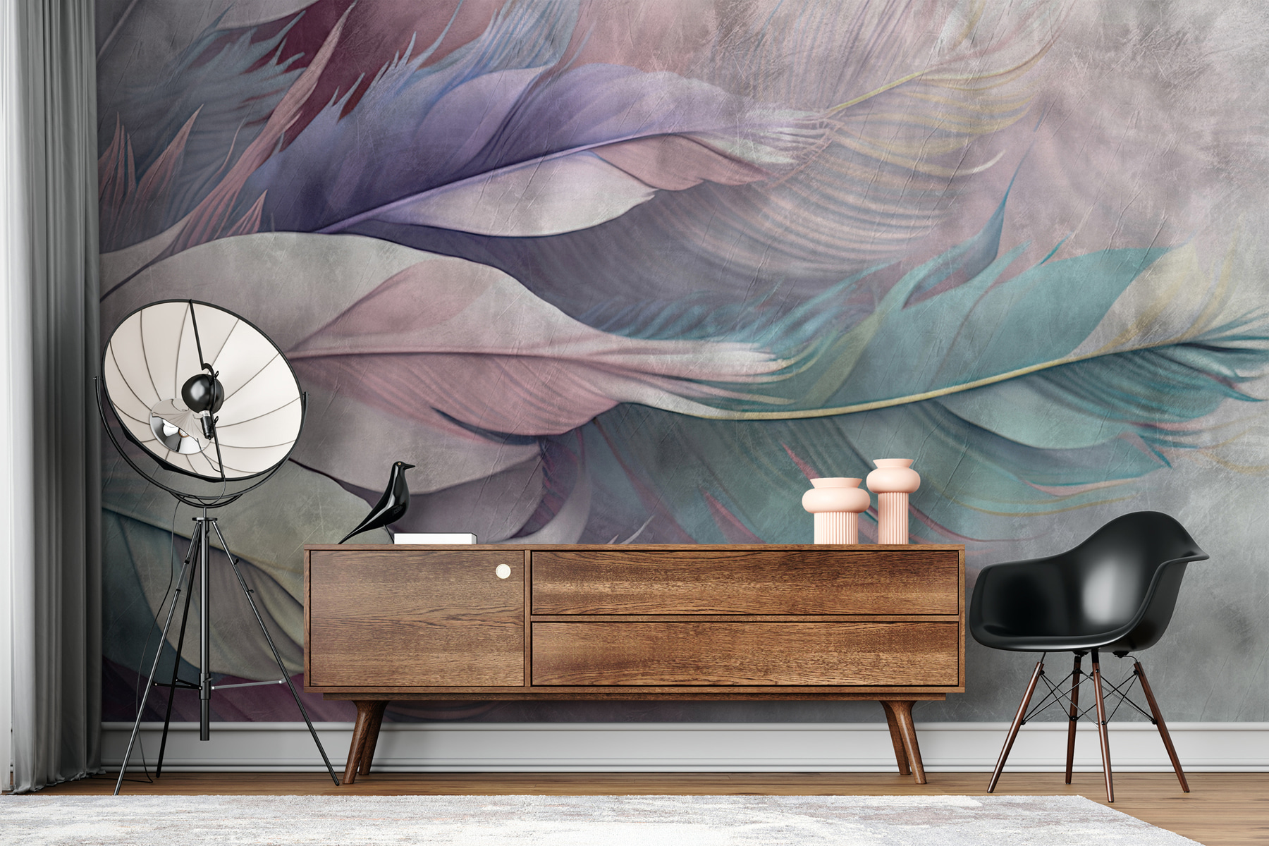 Transformeer je ruimte met deze muurschildering met kleurrijke veren die dansen op een zachte, gedempte achtergrond. Het is alsof de natuur een penseel naar je muren heeft gebracht. Stel je voor dat je aan je koffie nipt in een gezellig hoekje en die zachte tinten bewondert die lijken te veranderen met het lichtroze, groenblauw en lavendel die samen een dromerige omhelzing vormen. Deze muurschildering is niet alleen maar decor; het is een gespreksstarter, een stemmingsmaker. Of het nu in een slaapkamer is of in een levendige woonkamer, die veren kunnen een gevoel van rust geven of een uitbarsting van creativiteit ontketenen. Het is als een klein kunstwerk dat fluistert naar de ziel. Als je het ophangt, voelt het alsof je een betoverend briesje binnenlaat en eerlijk gezegd, wie wil dat nu niet?