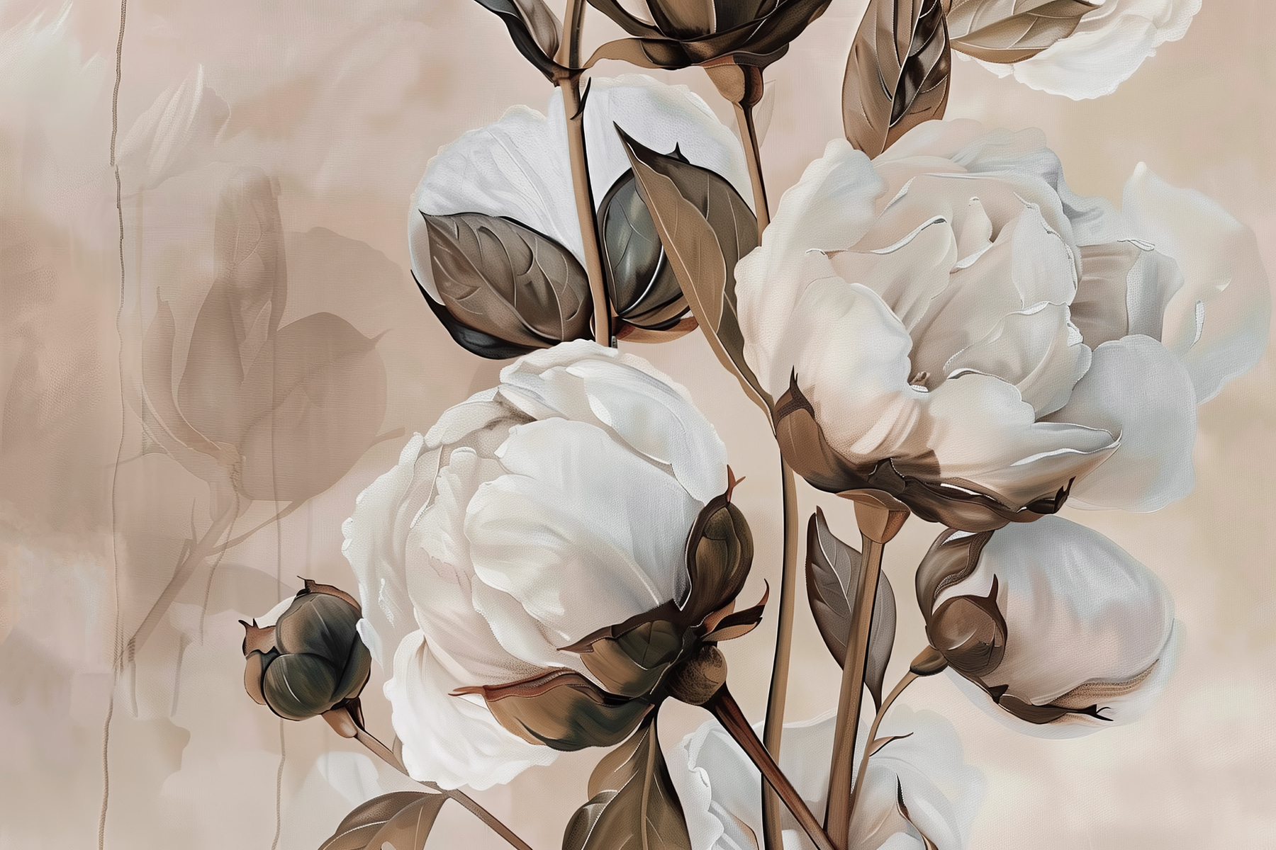 Transformeer elke kamer met de betoverende muurschildering van elegante bloemen tegen een zachte achtergrond. Stel je eens voor dat je wakker wordt met een zachte tuinsfeer in je woonkamer. Die weelderige, volle bloemblaadjes lijken je uit te nodigen, waardoor het lijkt alsof de lente het hele jaar door in de lucht hangt. Het is perfect voor ruimtes die een beetje rust nodig hebben – een knus hoekje of een zonovergoten hoekje. Stelt u zich eens voor: lekker wegkruipen met een goed boek of genieten van een kopje thee omringd door deze bloemenpracht. Het is niet zomaar wanddecoratie; het is alsof je een luchtige middag binnenwandelt, waar de natuur en charme elkaar ontmoeten. Fleur je muren op en laat de goede vibes rollen!