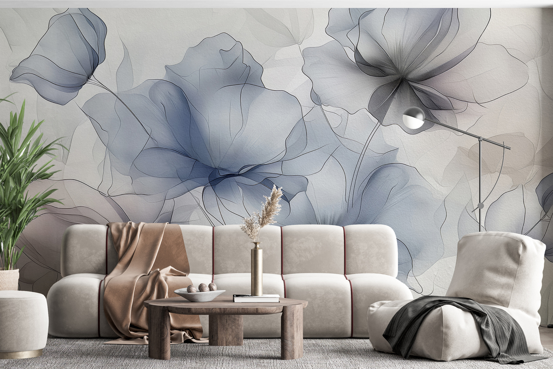 Transformeer je ruimte met de dromerige muurschildering “Ethereal Blossoms in Monochrome Hues”. Stel je voor dat je een serene tuin binnenstapt waar delicate bloemen sierlijk zweven en een zachte, rustige sfeer creëren. De zachte lijnen en gedempte tinten dansen samen en voegen een vleugje elegantie toe zonder de kamer te overweldigen. Deze muurschildering is perfect voor een gezellig leeshoekje of een rustgevende slaapkamer en nodigt je uit om diep adem te halen en tot rust te komen. Vrienden zullen je vragen waar je zo’n uniek stuk hebt gevonden en jij zult glimlachen omdat je weet dat dit het perfecte vleugje natuur is dat je altijd al wilde hebben. Echt, het is alsof je een serene ontsnapping aan je muur hebt hangen!