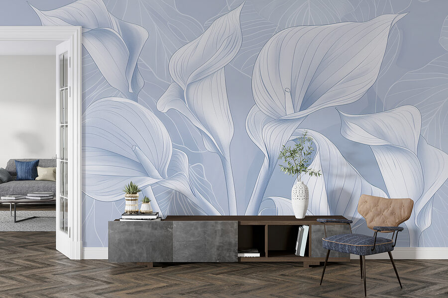 Breng een frisse wind in je interieur met deze muurschildering met elegante witte bloemen die dansen tegen een zachtblauwe achtergrond. Het is alsof je een kleine tuin in huis hebt, maar dan zonder de vervelende bijen. Stel je voor dat je ‘s ochtends aan je koffie nipt terwijl de rustgevende tinten je omhullen en een oase van rust creëren. Het zal je humeur direct verbeteren en elke muur omtoveren tot een heerlijke gesprekspartner. Vrienden zullen zich afvragen of je een ontwerper hebt ingehuurd, maar het zal gewoon je geheim zijn. Perfect voor een gezellig hoekje of een opvallende muur, het voegt precies het juiste vleugje charme toe. Wie wist dat kunst aan de muur het alledaagse leven een beetje specialer kon maken?