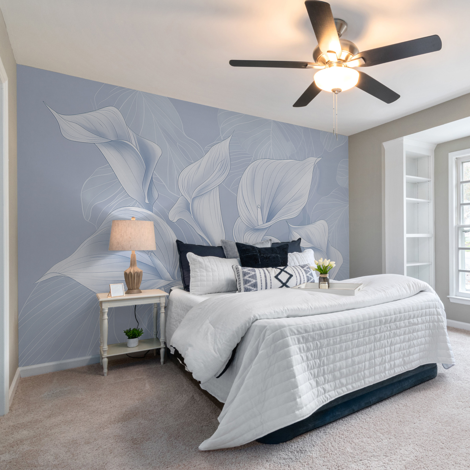 Breng een frisse wind in je interieur met deze muurschildering met elegante witte bloemen die dansen tegen een zachtblauwe achtergrond. Het is alsof je een kleine tuin in huis hebt, maar dan zonder de vervelende bijen. Stel je voor dat je ‘s ochtends aan je koffie nipt terwijl de rustgevende tinten je omhullen en een oase van rust creëren. Het zal je humeur direct verbeteren en elke muur omtoveren tot een heerlijke gesprekspartner. Vrienden zullen zich afvragen of je een ontwerper hebt ingehuurd, maar het zal gewoon je geheim zijn. Perfect voor een gezellig hoekje of een opvallende muur, het voegt precies het juiste vleugje charme toe. Wie wist dat kunst aan de muur het alledaagse leven een beetje specialer kon maken?