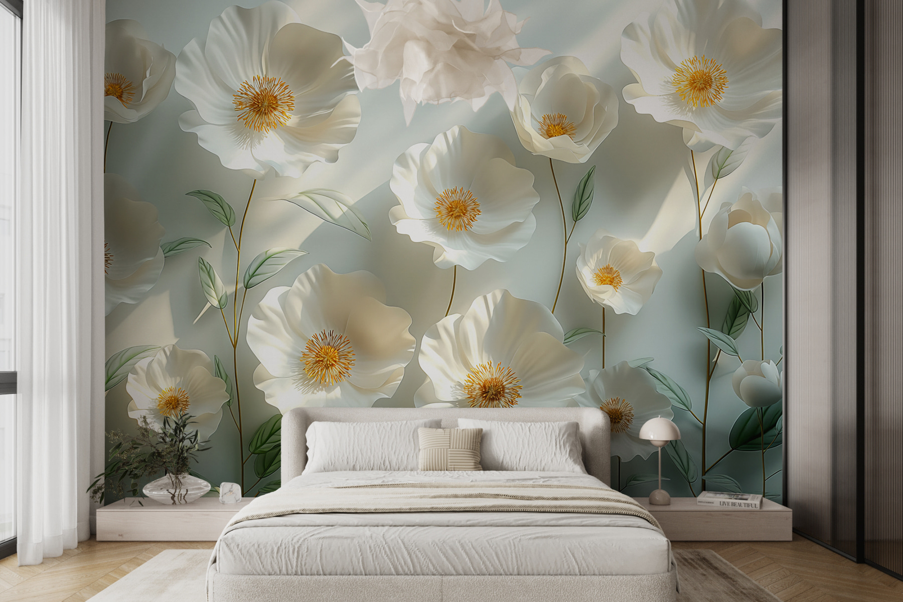 Tover elke muur om in een tuin met deze prachtige muurschildering met een mooie groep witte bloemen die vrolijk ontspruiten te midden van groene bladeren. Stel je voor dat je elke dag wakker wordt en het gevoel hebt dat je door een zonovergoten weide wandelt. Deze bloemen geven een frisse, rustgevende sfeer, perfect voor gezellige ochtenden of chille avonden. Of het nu in een woonkamer, slaapkamer of creatieve ruimte is, iedereen zal zeggen: “Wow, kijk daar eens!”. En wie houdt er nou niet van bloemen die geen water nodig hebben? Je muur zal je dankbaar zijn terwijl jij je koestert in de schoonheid!