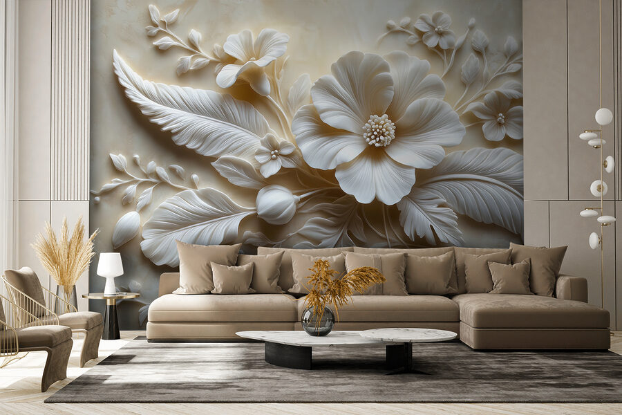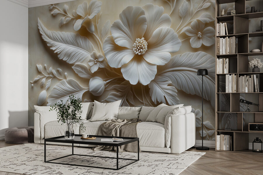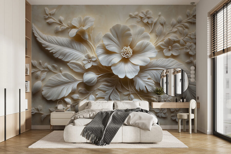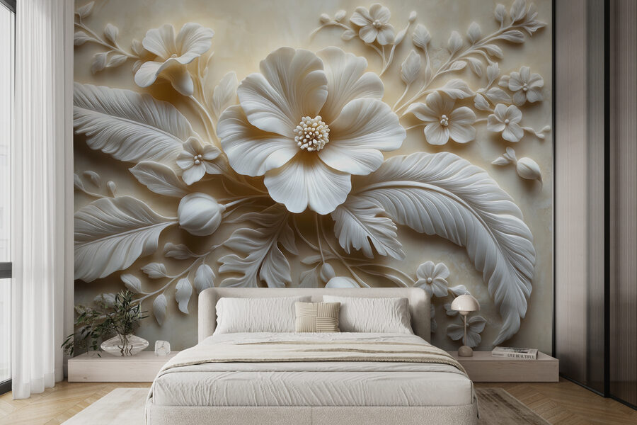 Verander elke kamer in een serene ontsnapping met deze prachtige muurschildering met delicate witte bloemen en weelderige bladeren. Stel je voor dat je de ruimte binnenloopt en je meteen opgetild voelt door de zachte elegantie die je omringt. Het is alsof je een tuin in huis haalt – zonder de gieter! Het ingewikkelde ontwerp trekt de aandacht en stimuleert gesprekken, waardoor het perfect is voor een gezellige hoek of een levendige woonkamer. Vrienden zullen waarschijnlijk even stilstaan en zich afvragen waar je zo’n juweeltje hebt gevonden. Omarm de rustgevende aanwezigheid van de natuur bij je thuis. Wie wist dat muren zo warm konden aanvoelen?