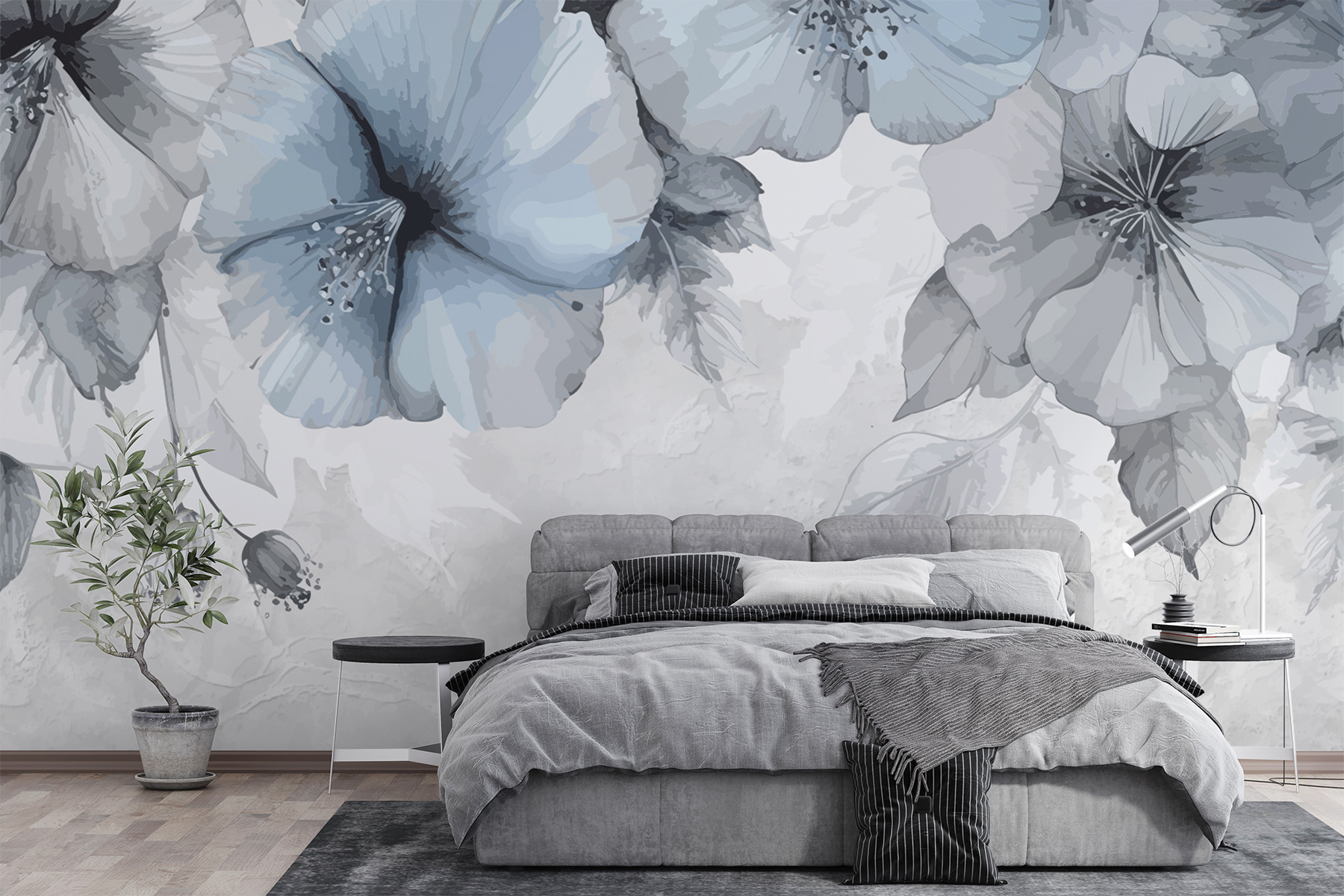 Stel je voor dat deze prachtige “Fotobehang w01401” je ruimte bekroont! Het is alsof je elke dag een serene aquareltuin binnenwandelt. Die oversized, dromerige blauwe bloemen tegen een zachte achtergrond? Absoluut betoverend! Dit zijn geen alledaagse bloemen; ze hebben een betoverende, licht fantastische uitstraling – het is bijna alsof ze uit een sprookje zijn geplukt.