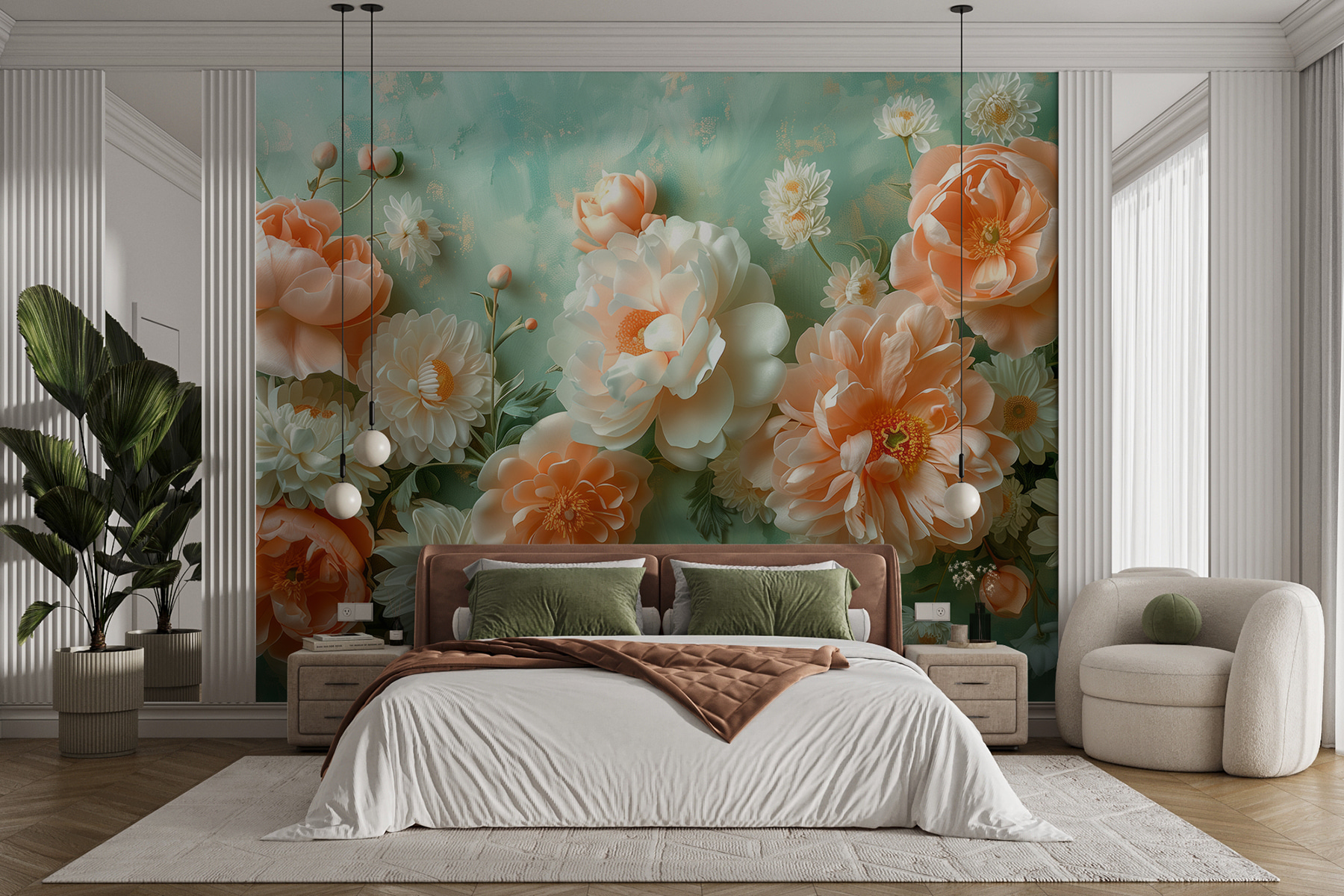Kijk eens naar deze schoonheid! “Muurschilderingen w01426” – een absolute topper rechtstreeks uit de categorie “Bloemen muurschilderingen 3D” en meer. Stel je dit eens voor op je muur: weelderige, oversized pioenrozen en madeliefjes in zacht perzik en wit, knallend in een verrukkelijke, bijna magische 3D. Het is alsof je een serene tuin binnenstapt telkens als je de kamer binnenloopt. Perfect om een vleugje natuur toe te voegen – zonder water te geven! Denk eens aan de gesprekken die je zult voeren – “Wow, waar heb je dat vandaan?”. Je kunt de bloemen bijna ruiken… toch? Precies wat je nodig hebt om wat charme en rust in je kamer te brengen.