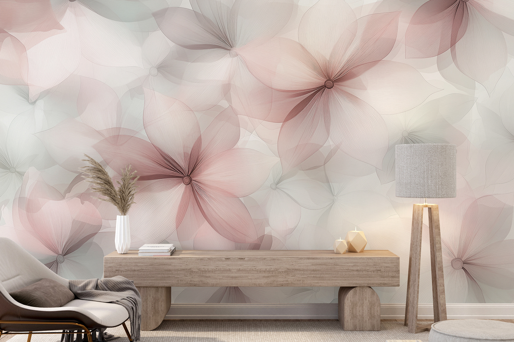 Tover elke kamer om in een serene tuin met deze prachtige muurschildering met een dromerig boeket bloemen op een frisse witte achtergrond. Stel je voor dat je wakker wordt met zachte bloemblaadjes die subtiele elegantie uitstralen en creëer een rustgevende oase thuis. Perfect voor een gezellig hoekje of een levendige leefruimte, deze delicate bloemen voegen een luchtig tintje toe dat fris en uitnodigend aanvoelt.