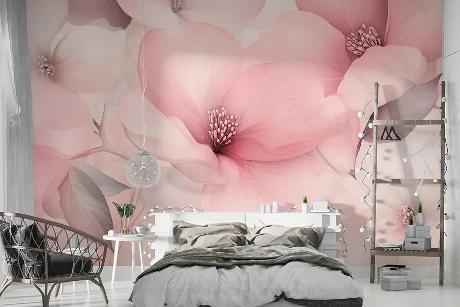 Stel je eens voor: je wordt wakker met een bleke blik en opeens, bam!… word je begroet door gigantische, zachte bloesems die hun ding doen op je muur. Zou dat de maandagochtend niet een beetje draaglijker maken? Deze muurschildering is een mix van roze en wit en straalt een serene sfeer uit. Het is net alsof je een rustgevende bloemenshow in je woonkamer hebt.