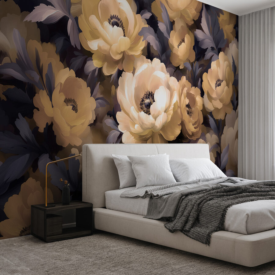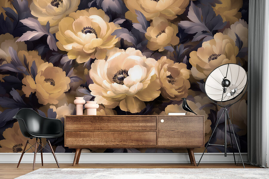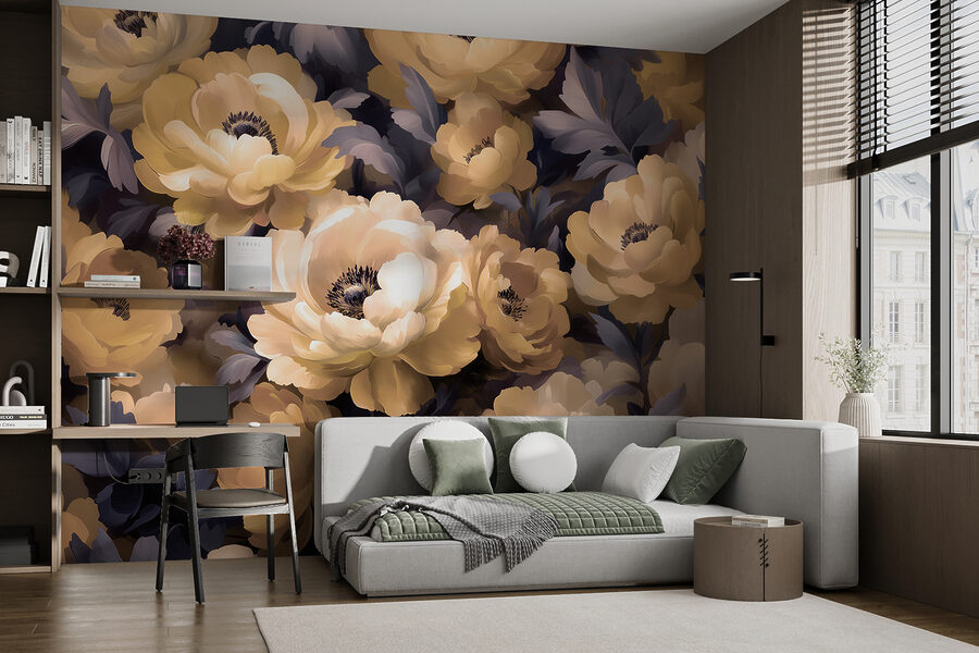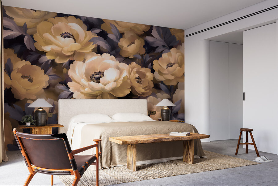 Stel je eens voor dat je een kamer binnenloopt die aanvoelt als een zachte omhelzing door een bloeiende tuin. Deze prachtige muurschildering met de bijnaam “Groep bloemen met bladeren” brengt je ruimte tot leven met zijn weelderige pioenrozen en grillige bladeren. Het is alsof je een permanente lentedag binnenshuis hebt. Perfect om een saai hoekje op te fleuren of een serene sfeer in je slaapkamer te creëren. Voel je de rust? Subtiel maar opvallend, het voegt een vleugje natuur toe zonder dat je water hoeft te geven. Het soort kunst dat je elke keer als je er langs loopt tevreden doet zuchten.