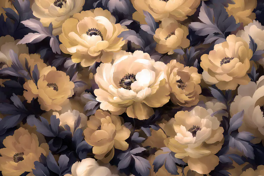 Stel je eens voor dat je een kamer binnenloopt die aanvoelt als een zachte omhelzing door een bloeiende tuin. Deze prachtige muurschildering met de bijnaam “Groep bloemen met bladeren” brengt je ruimte tot leven met zijn weelderige pioenrozen en grillige bladeren. Het is alsof je een permanente lentedag binnenshuis hebt. Perfect om een saai hoekje op te fleuren of een serene sfeer in je slaapkamer te creëren. Voel je de rust? Subtiel maar opvallend, het voegt een vleugje natuur toe zonder dat je water hoeft te geven. Het soort kunst dat je elke keer als je er langs loopt tevreden doet zuchten.