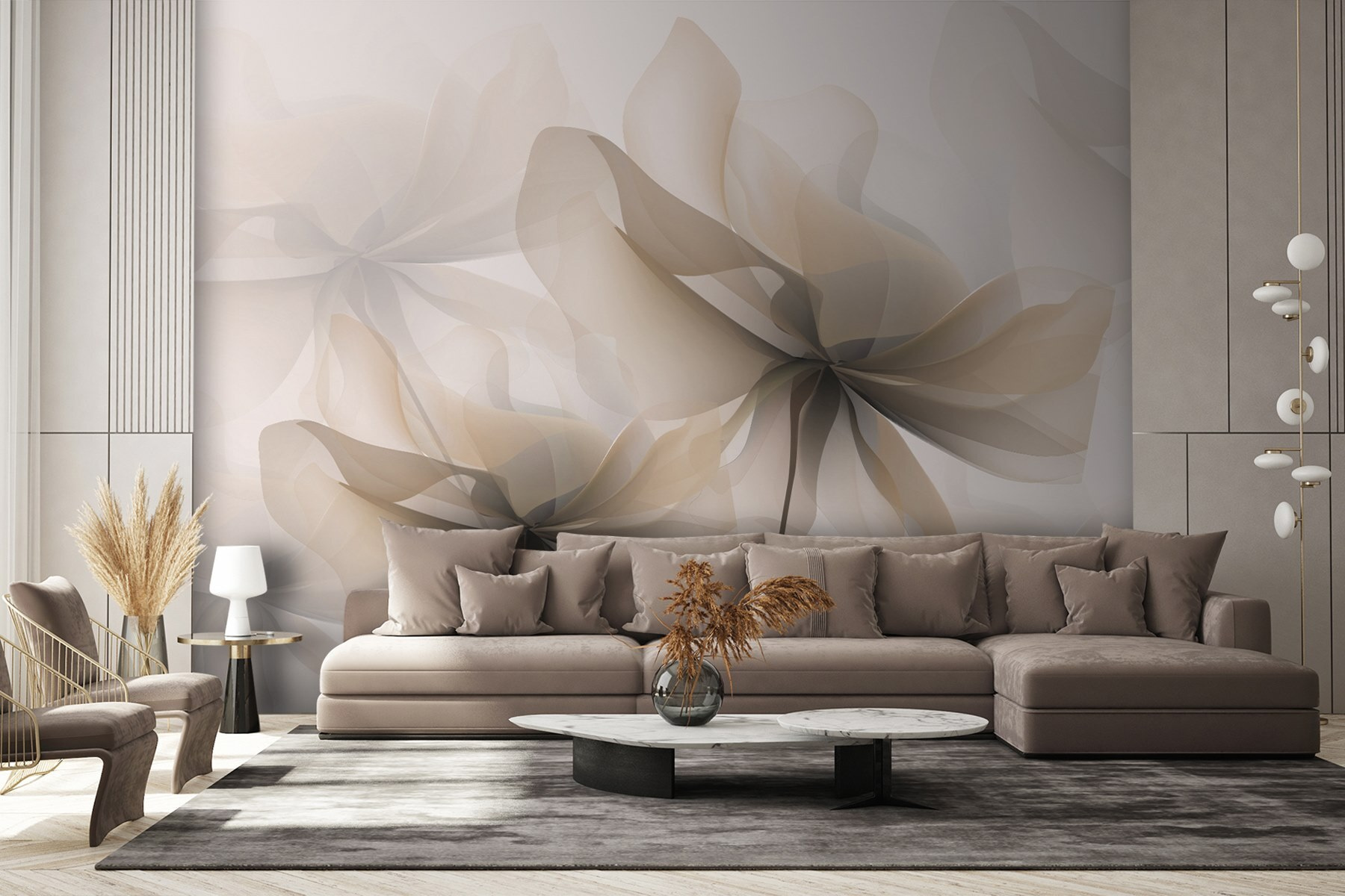 Stel je voor dat je elke dag wakker wordt met een zachte bloemendroom. De muurschildering “Elegante bloemen in zachte tinten” is precies dat: een serene fluistering van de poëzie van de natuur die over je muur is geschilderd. Het is alsof de bloemen een delicate wals houden in je woonkamer, waardoor alles net een beetje magischer aanvoelt. Perfect voor wie houdt van een vleugje elegantie bij de ochtendkoffie of een gezellige zondagse knuffel. Deze zachte, vloeiende bloemblaadjes omarmen teder je ruimte en creëren een rust die bijna aanvoelt als een warme knuffel. Dus waarom zou je je muren niet mee laten dansen?