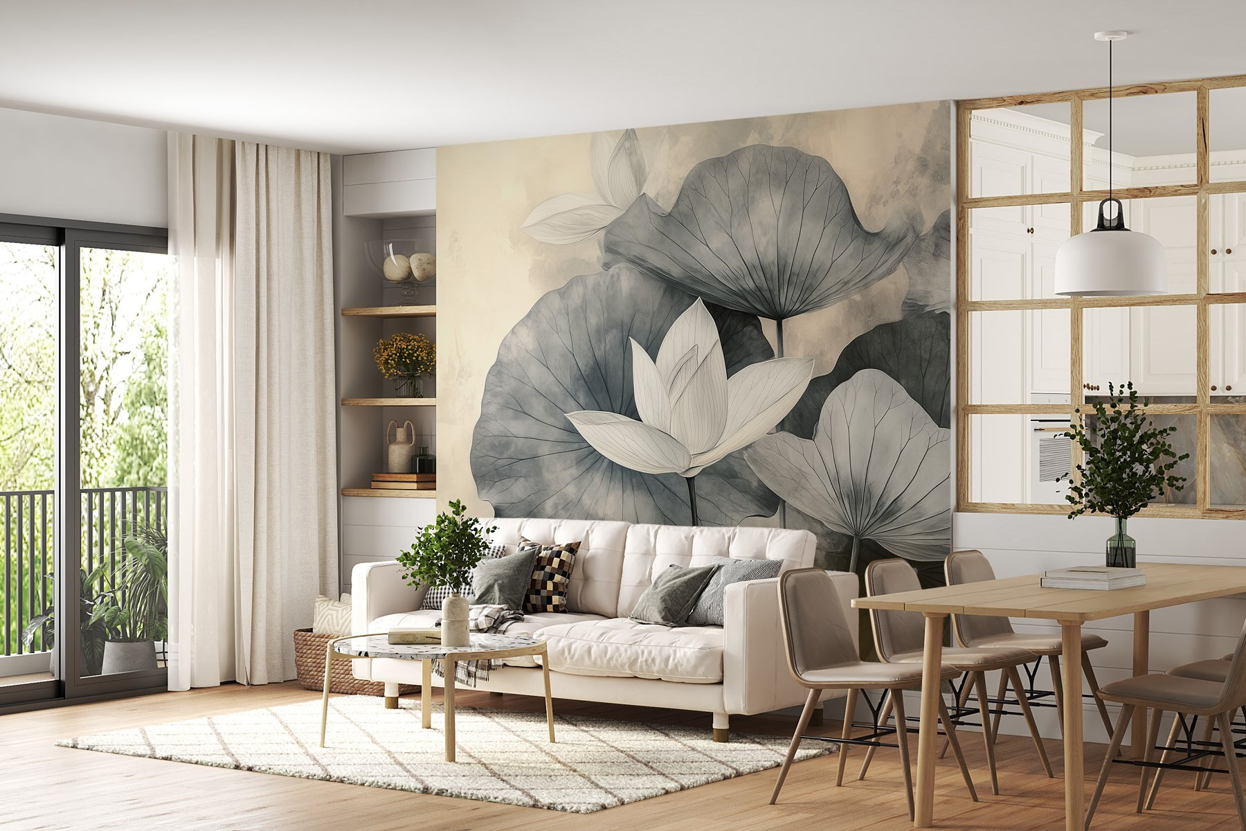 Verander elke muur in een rustige ontsnapping met de muurschildering “Serene Lotus in Gentle Hues”. Stel je voor dat je een oase van rust binnenstapt telkens als je de kamer binnenkomt. De zachte tinten en delicate lotusbloemen fluisteren ontspanning en vrede – perfect voor het creëren van een gezellige leeshoek of een serene meditatieruimte. Stel je voor dat je thee drinkt of in een goed boek duikt terwijl de zachte tinten je omhullen in comfort. Bovendien is het een fantastische gespreksstarter! Vrienden zullen je vragen waar je deze schoonheid hebt gevonden en jij zult glimlachen – omdat het nu deel uitmaakt van de sfeer van je gezellige huis. Het is meer dan een muurschildering; het is een sfeer!