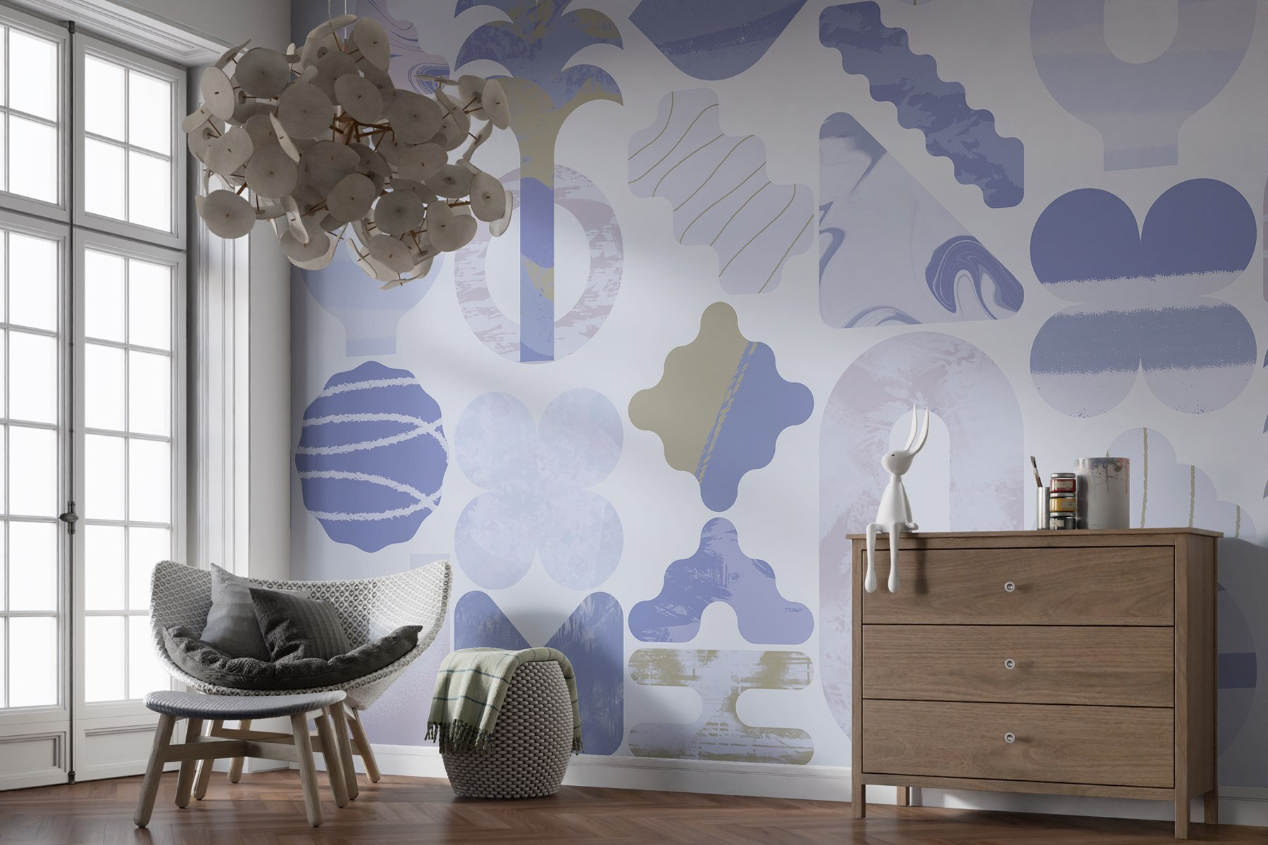 Transformeer je ruimte met deze prachtige blauw-witte muurschildering, vol speelse vormen die als een grillige puzzel over het oppervlak dansen. Stel je voor dat je een kamer binnenloopt waar de kleuren je ziel kalmeren en je creativiteit aanwakkeren. Het heeft die sfeer – verfrissend modern met een knipoog naar de klassieke elegantie van een zacht palet. De abstracte charme van deze muurschildering, die perfect is voor een gezellige leeshoek of een levendige ontmoetingsplek, nodigt uit tot een gesprek en voegt een vleugje persoonlijkheid toe. Het is alsof je een kunstwerk hebt dat zowel een achtergrond als een gedurfd statement is. Wie wil er nu niet naar dit stijlvolle meesterwerk staren terwijl je aan je ochtendkoffie nipt of vrienden ontvangt? Duik in een wereld vol inspiratie!