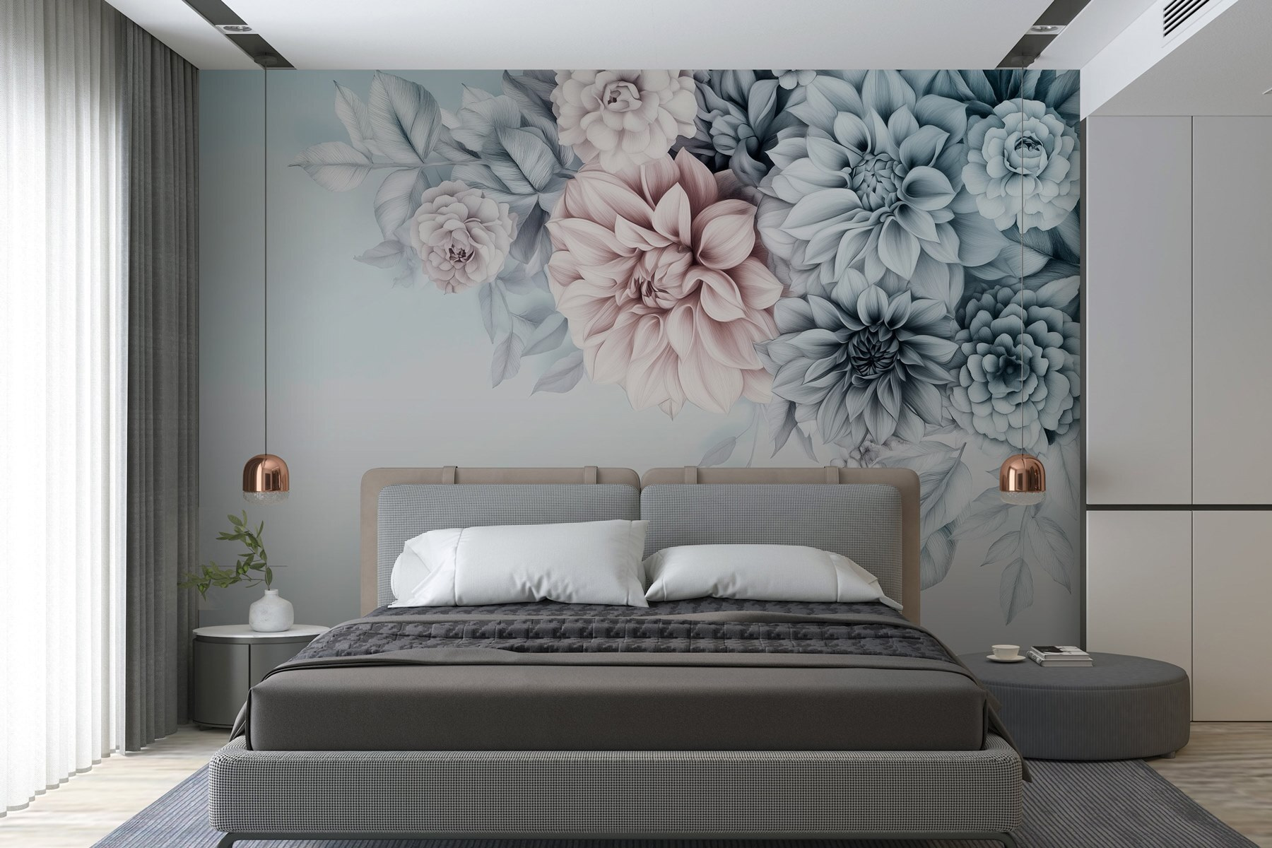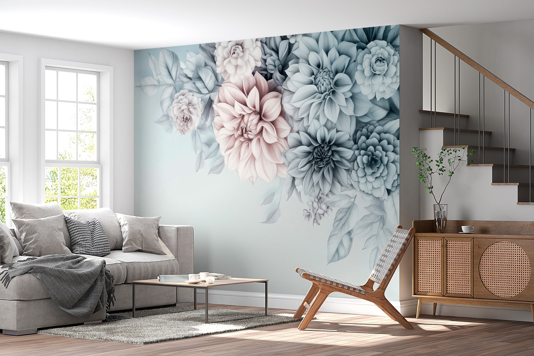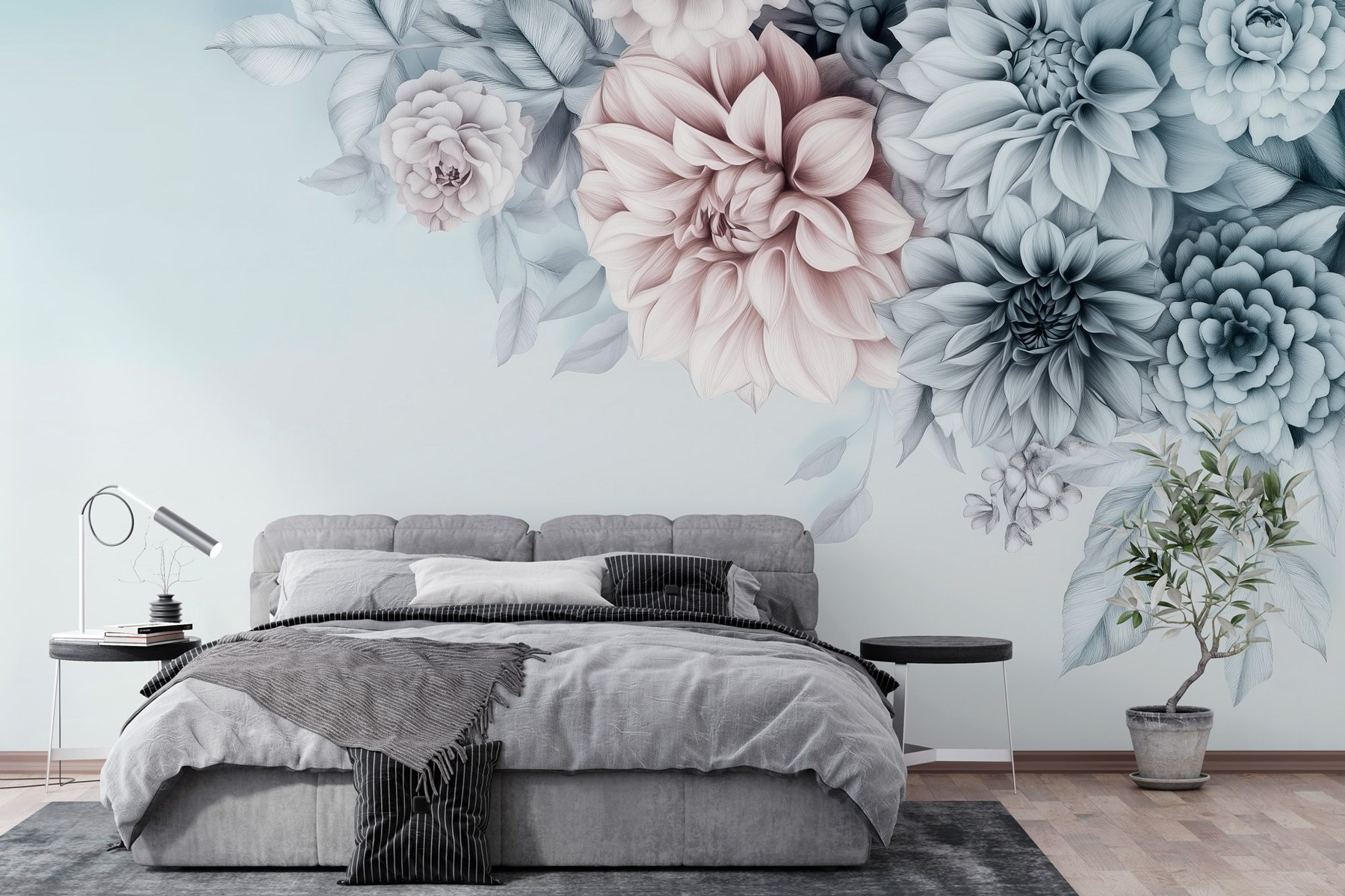 Transformeer je kamer met de prachtige muurschildering “Groep bloemen met bladeren”. Deze prachtige muurschildering brengt de frisse sfeer van een tuin naar binnen, perfect om elke kamer op te fleuren. Stel je voor dat je elke dag wakker wordt met een zachte bloesem van sereniteit. De zachte tinten en delicate contouren creëren een rustgevende sfeer, waardoor het een geweldige achtergrond is voor je ochtendkoffie of je favoriete leeshoekje. Het is alsof je een boeket in huis haalt – water geven is niet nodig! Of het nu een logeerkamer is of een gezellige woonkamer, deze bloemen zullen bezoekers charmeren en vreugde geven. Bovendien is het een gemakkelijke manier om flair toe te voegen zonder dat je echt hoeft te tuinieren. Ga je gang, laat je muren bloeien!