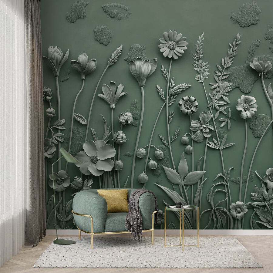 Transformeer elke ruimte met de Fotobehang Grey Sculpture of Flowers and Plants. Dit stuk voegt een charmante en kunstzinnige vibe toe, bijna alsof je een rustige tuin binnenshuis brengt. Het ingewikkelde ontwerp bestaat uit een reeks bloemen waarvan de vormen speels dansen tegen een zachte achtergrond. Stel je voor dat je lekker gaat zitten met een goed boek, omringd door deze zachte bloemen – het is als een frisse neus halen zonder de pollen! Perfect voor woonkamers, slaapkamers of zelfs een knus hoekje. Het nodigt uit tot warmte en rust, waardoor het een mooie achtergrond vormt voor alledaagse momenten. Wie zou zich niet geïnspireerd voelen in zo’n mooie ruimte?