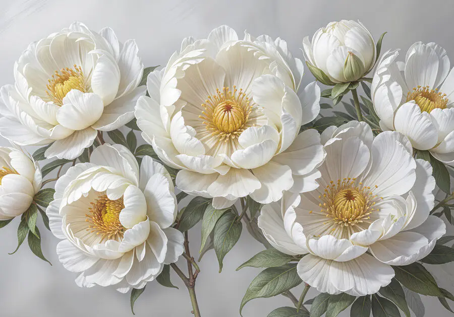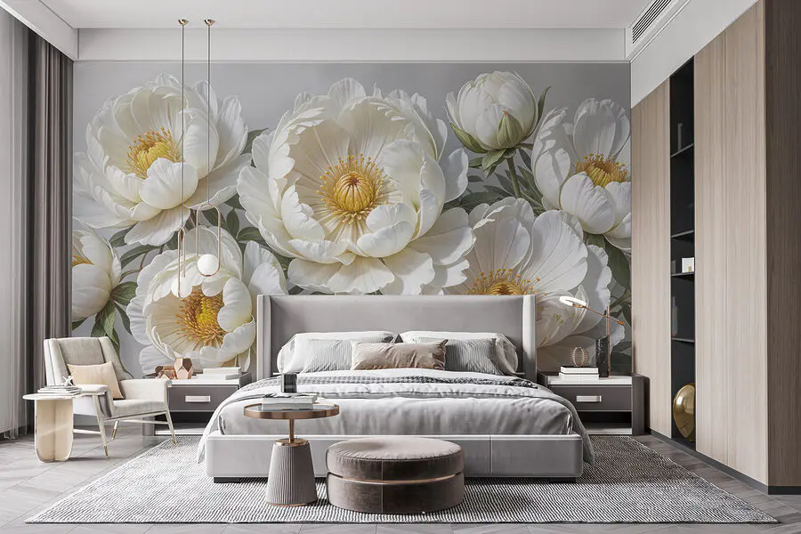Ooit een kamer binnengelopen en meteen een gevoel van rust gekregen? Dat is de magie van de “Fotobehang Group of White Flowers”. Deze prachtige pioenrozen bloeien bijna van de muur met hun zachte, wuivende bloemblaadjes als een delicaat gefluister van de lente in je leefruimte. Stel je voor dat je koffie drinkt met deze schoonheden in het ochtendlicht. Het zijn niet zomaar muurschilderingen; het is een mini-vakantie, een serene ontsnapping op je eigen muur. Perfect voor het opfrissen van elke kamer die een frisse start nodig heeft. Voel je die bloemblaadjes al?