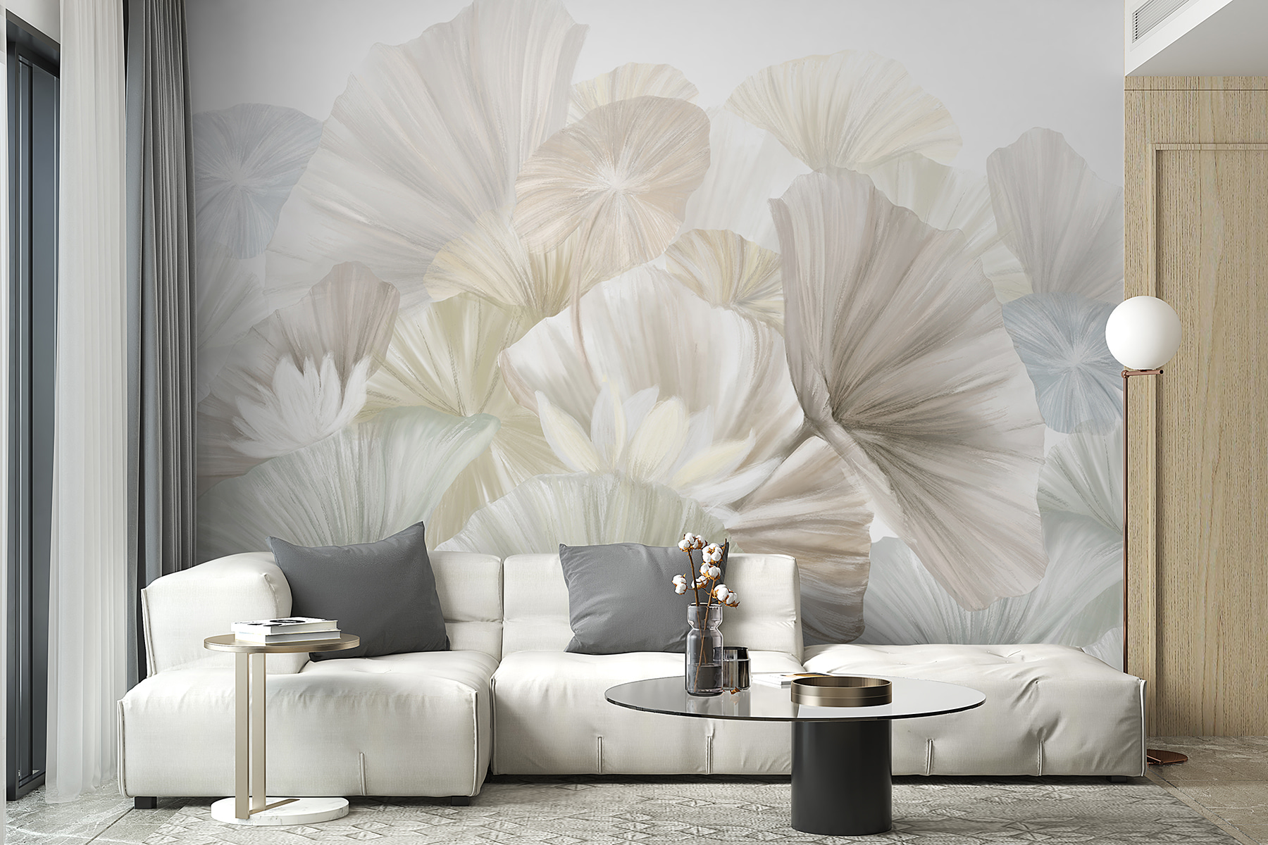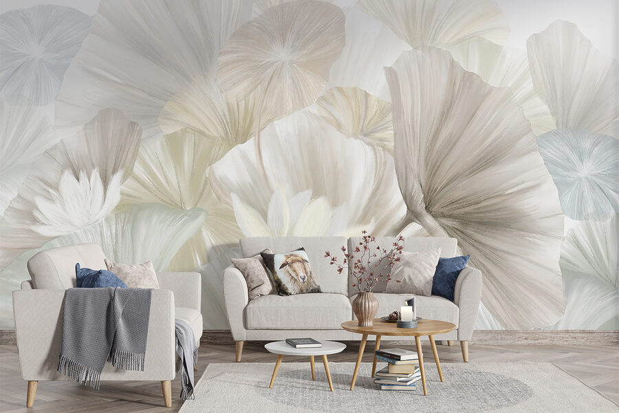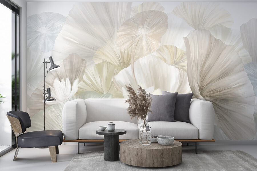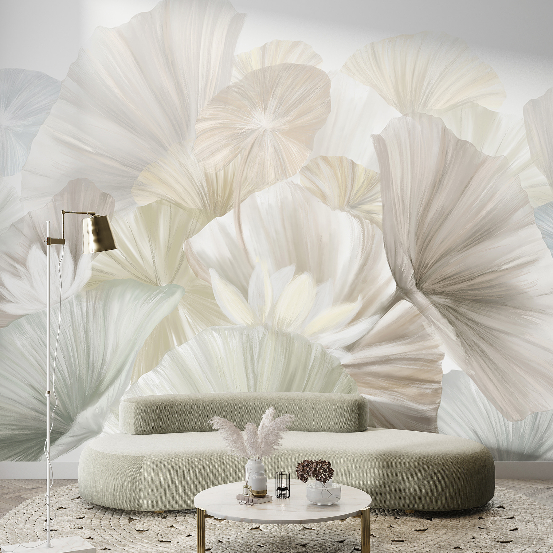 Stel je eens voor dat je een kamer binnenloopt waar de muren tegelijkertijd rust en natuur uitstralen. Deze muurschildering, “Groep witte en grijze bladeren”, brengt die serene sfeer als een zacht ochtendbriesje. De aquareltexturen en zachte tinten voelen als een knusse deken voor je ogen en nodigen uit tot een moment om te ontsnappen. Stel je voor dat je ‘s ochtends aan je koffie nipt, verdwaald in de rustgevende patronen; het is als een meditatieve pauze voordat de dag begint. Perfect om een extra vleugje rust toe te voegen aan elke ruimte!
