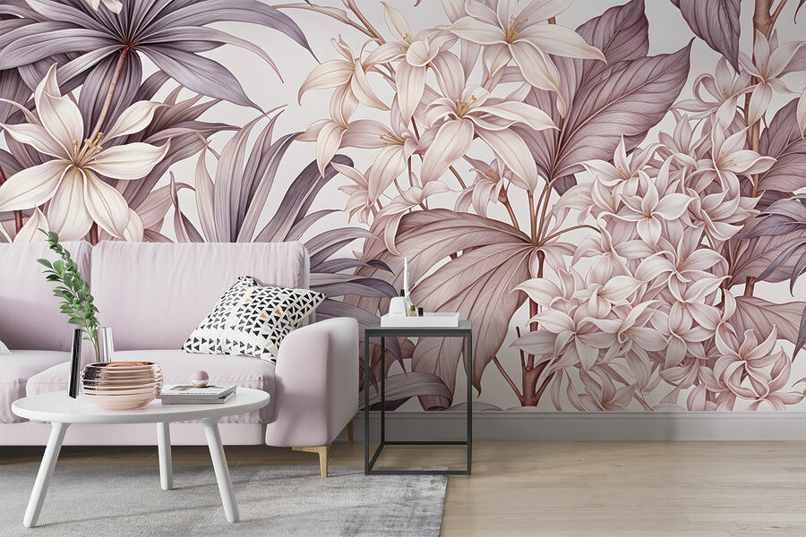 Stel je voor dat je je woonkamer binnenstapt en begroet wordt door de muurschildering “Elegance in Monochrome Florals”. Het is als de kalme omhelzing van een zacht briesje gewikkeld in delicate bloemblaadjes – deze muurschildering fluistert verfijning. Monochrome magie vermengt zich met de kunst van de natuur en verandert muren in gesprekken. Je gasten willen misschien wel wat langer blijven hangen. Dit is niet zomaar decoratie – het is sfeerbepalende poëzie. Perfect voor wie van bloemen houdt maar geen groene vingers heeft. Misschien is het tijd om je muren te laten bloeien! 🌼