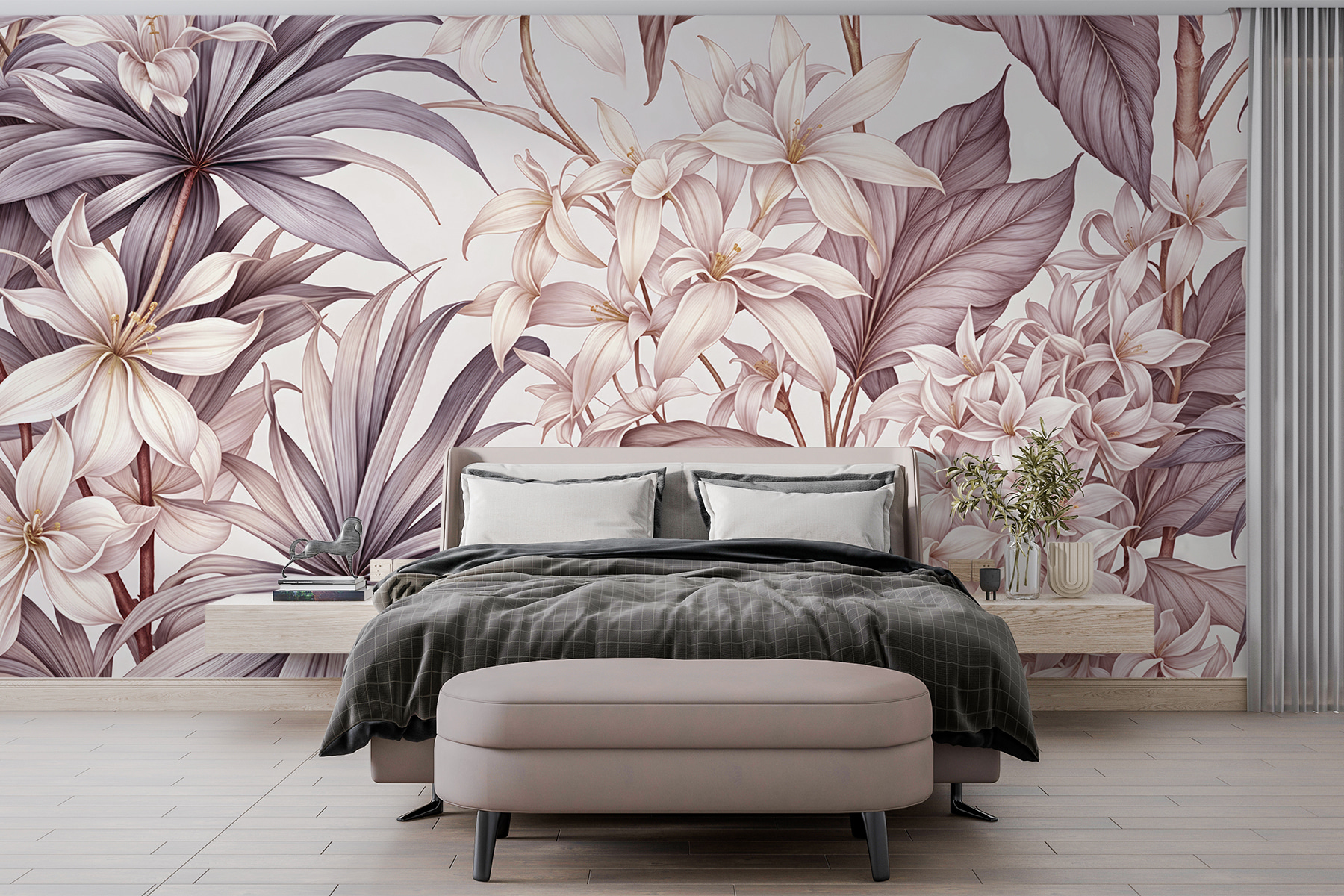 Stel je voor dat je je woonkamer binnenstapt en begroet wordt door de muurschildering “Elegance in Monochrome Florals”. Het is als de kalme omhelzing van een zacht briesje gewikkeld in delicate bloemblaadjes – deze muurschildering fluistert verfijning. Monochrome magie vermengt zich met de kunst van de natuur en verandert muren in gesprekken. Je gasten willen misschien wel wat langer blijven hangen. Dit is niet zomaar decoratie – het is sfeerbepalende poëzie. Perfect voor wie van bloemen houdt maar geen groene vingers heeft. Misschien is het tijd om je muren te laten bloeien! 🌼