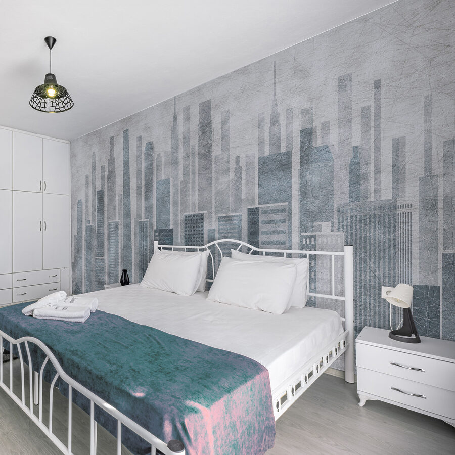 De gedempte grijstinten en blauwtinten van deze muurschildering geven elke ruimte een geraffineerde maar toch edgy uitstraling. Het is alsof je in een high-tech wereld leeft zonder je huis te verlaten. Denk maar aan lekker onderuit zakken met een boek onder deze torenhoge gebouwen, of je gedachten de vrije loop laten terwijl je van je ochtendkoffie nipt…