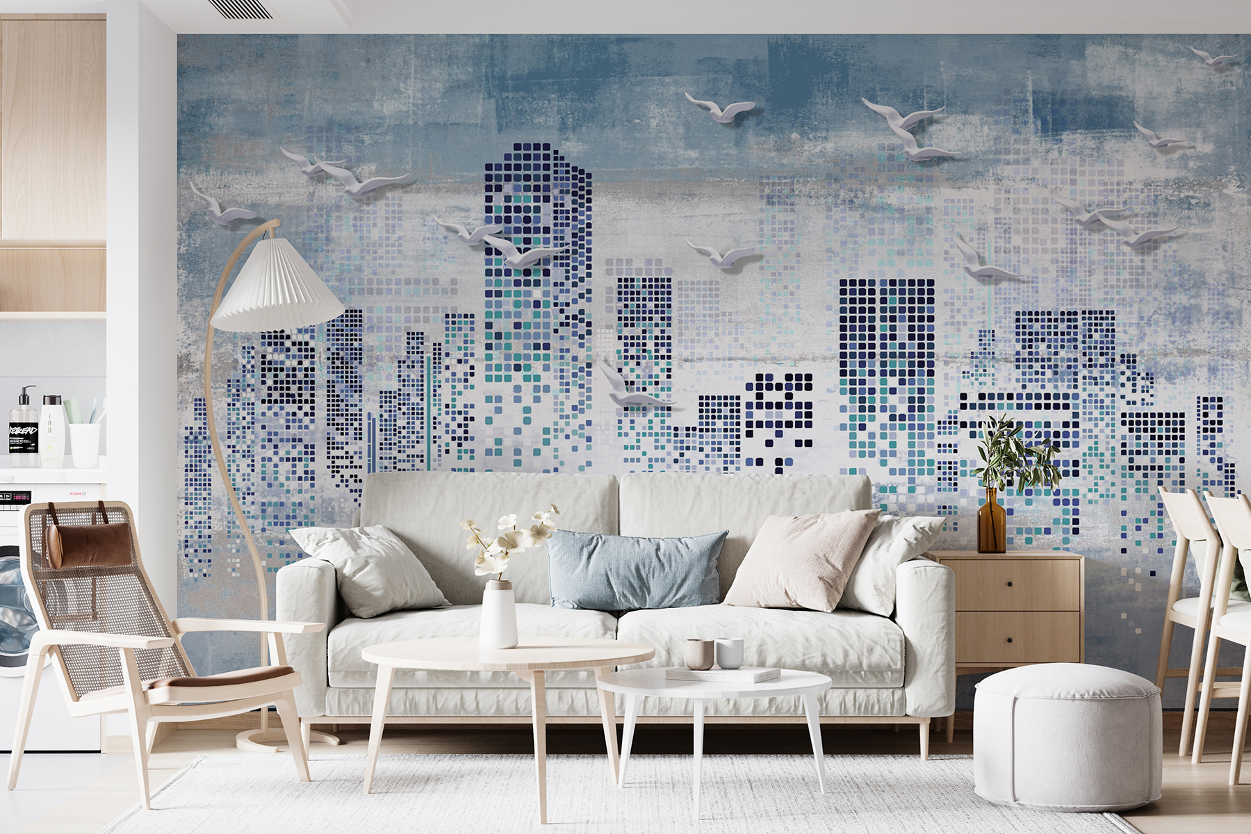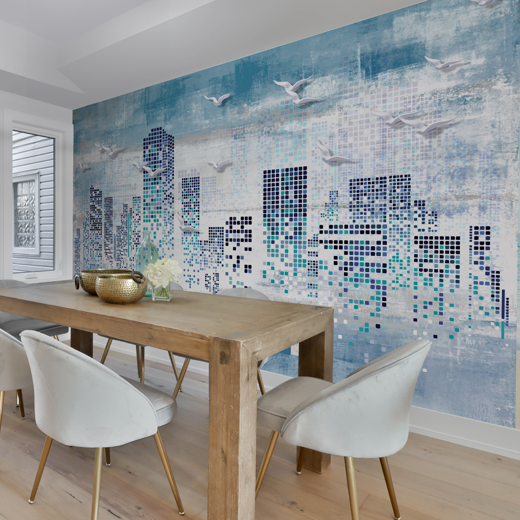 Stel je voor dat je over een stadslandschap vliegt telkens als je je kamer binnenloopt! Deze muurschildering “Birds Flying Over a City” geeft elke ruimte een vleugje eigenzinnigheid en verfijning. Perfect voor kinderen, tieners en zelfs volwassenen met een jong hart. Het coole geometrische 3D-ontwerp voegt diepte toe, terwijl de serene kleuren het gevoel geven van een dromerig avontuur. Kun je het je voorstellen? Meeuwen die door de abstracte, gepixeleerde skyline glijden; het is net een digitaal meesterwerk dat de natuur ontmoet. Ideaal om de kamer van een tiener op te fleuren of een vleugje stedelijke elegantie toe te voegen – zonder al het lawaai! Leun achterover, ontspan en laat je verbeelding de vrije loop…