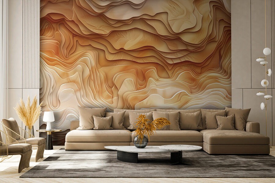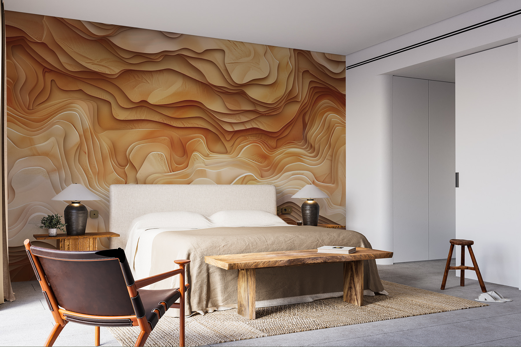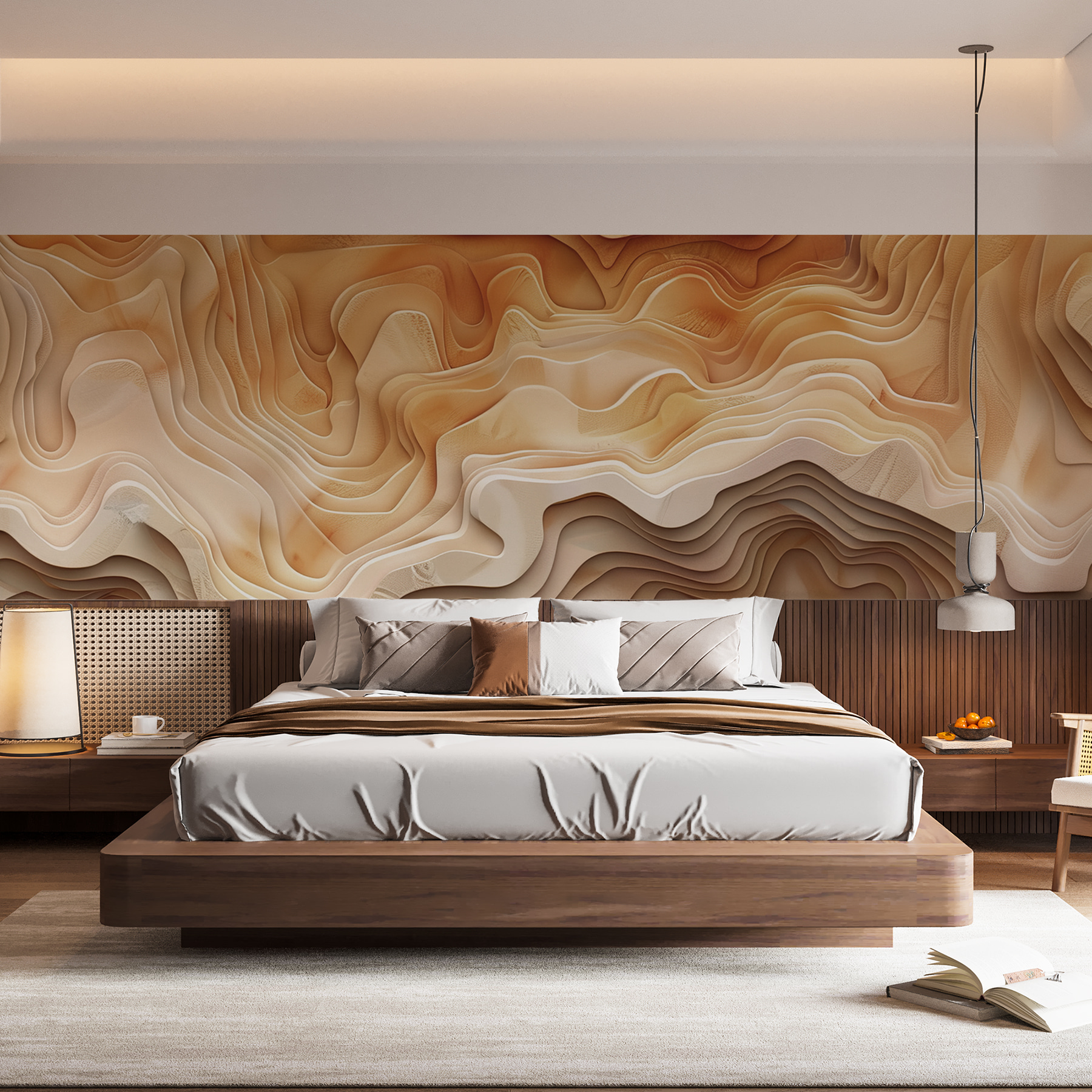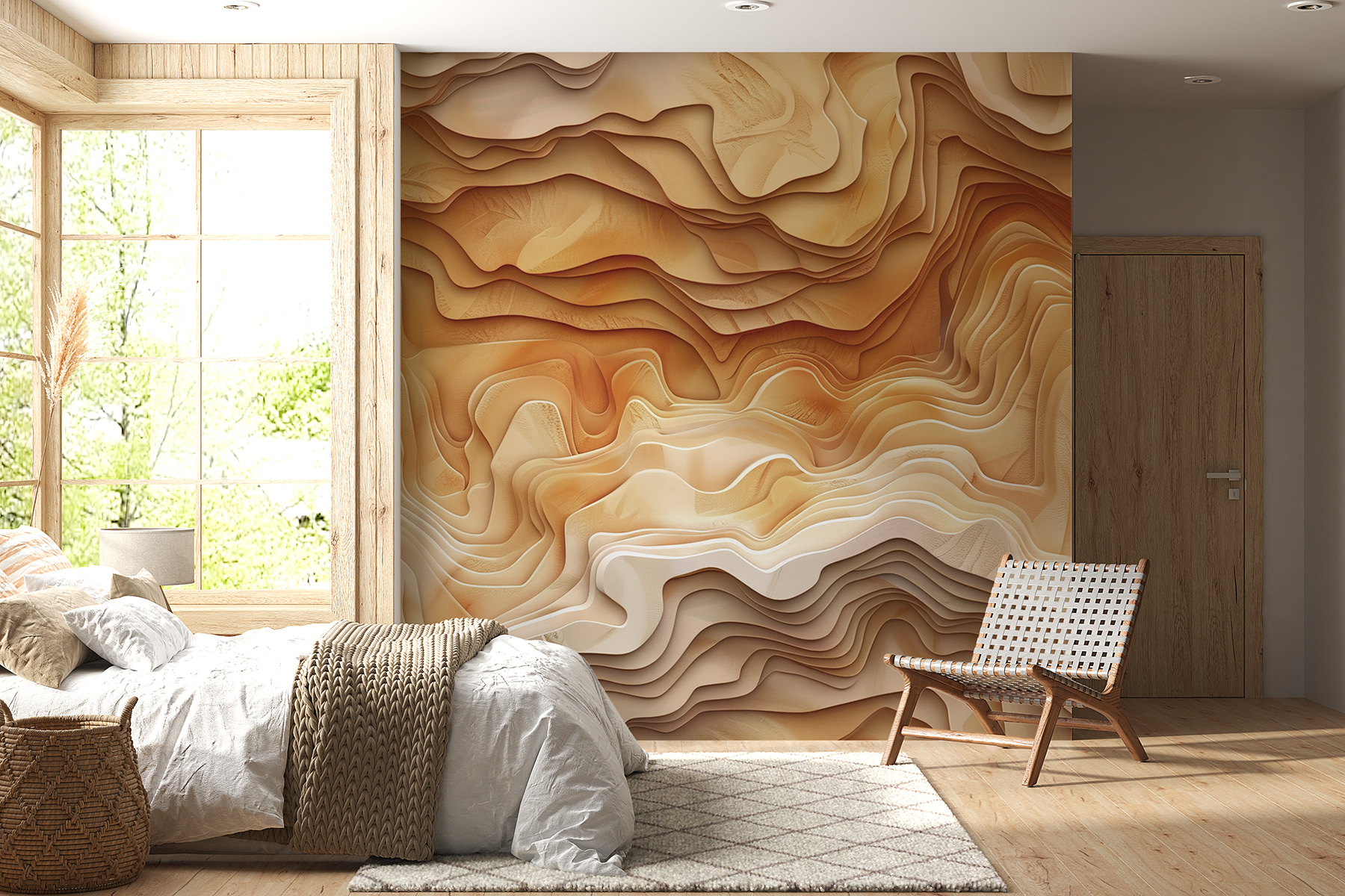Transformeer je muren met de schoonheid van de aardlagen, vastgelegd in deze muurschildering met abstracte golven in warme, aardse tinten. Stel je voor dat je een serene omgeving binnenstapt die natuurlijk en uitnodigend aanvoelt – perfect voor een gezellige leeshoek of een levendige woonkamer. Dit ontwerp voegt diepte toe zonder de zintuigen te overweldigen. Het is alsof je een stukje natuur in huis haalt. Vrienden zullen het bewonderen en misschien zelfs vragen of je stiekem binnenhuisarchitect bent geworden. Waarom laat je je ruimte geen verhaal vertellen? Het is tijd om afscheid te nemen van saaie muren en hallo te zeggen tegen een sfeer die speciaal voor jou is gemaakt.