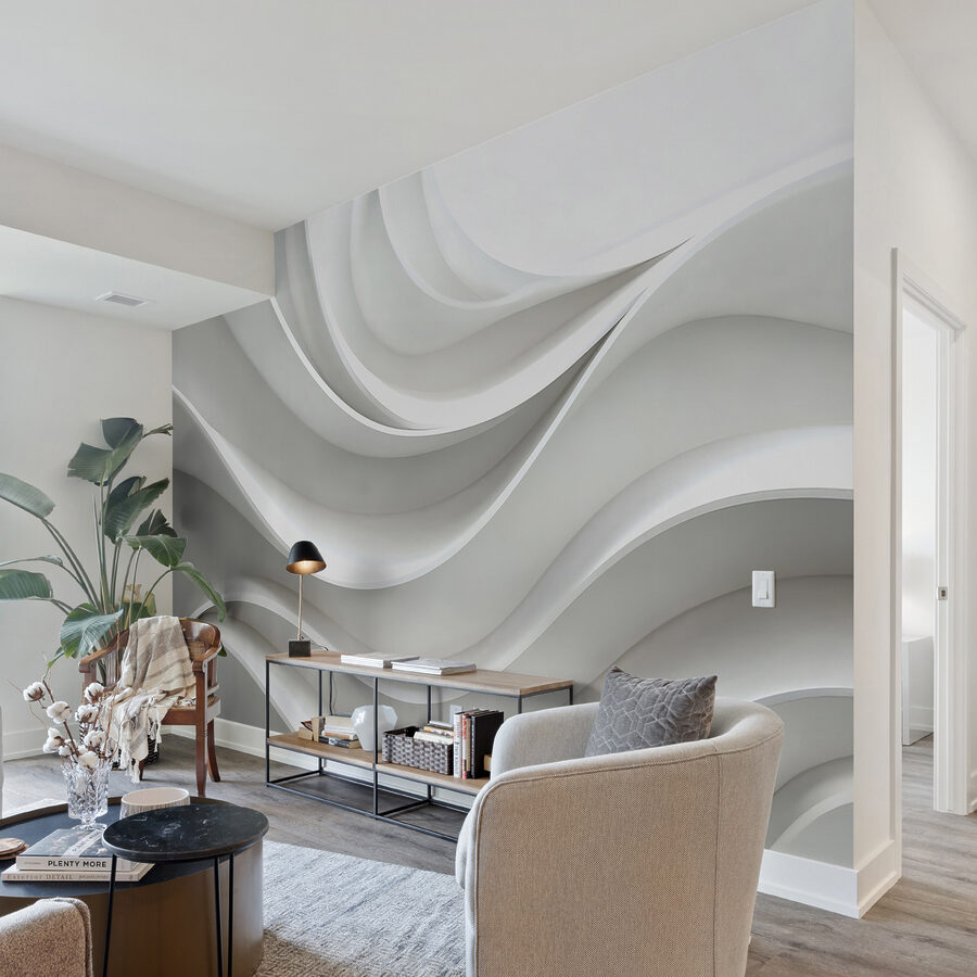 Stel je eens voor dat je een kamer binnenstapt met een muur die aanvoelt als een zachte golf, met uitnodigende rondingen en zachte lijnen. Deze muurschildering is niet zomaar decor; het is alsof je een stuk moderne kunst in je kamer brengt. Stel je voor dat je vrienden ontvangt die hun handen over de krullen laten gaan, verdwaald in dagdromen geïnspireerd door de strakke schoonheid. Het voegt een frisse sfeer toe en verandert zelfs de saaiste muren in iets dat een gesprek op gang brengt. Bovendien is het veelzijdig genoeg om in elke kamer te passen, of het nu een gezellig hoekje is of een ruime woonkamer. Omarm de charme van eenvoud met deze prachtige achtergrond die een vleugje rust en creativiteit toevoegt aan het dagelijks leven. Wie wist dat muren zo expressief konden zijn?