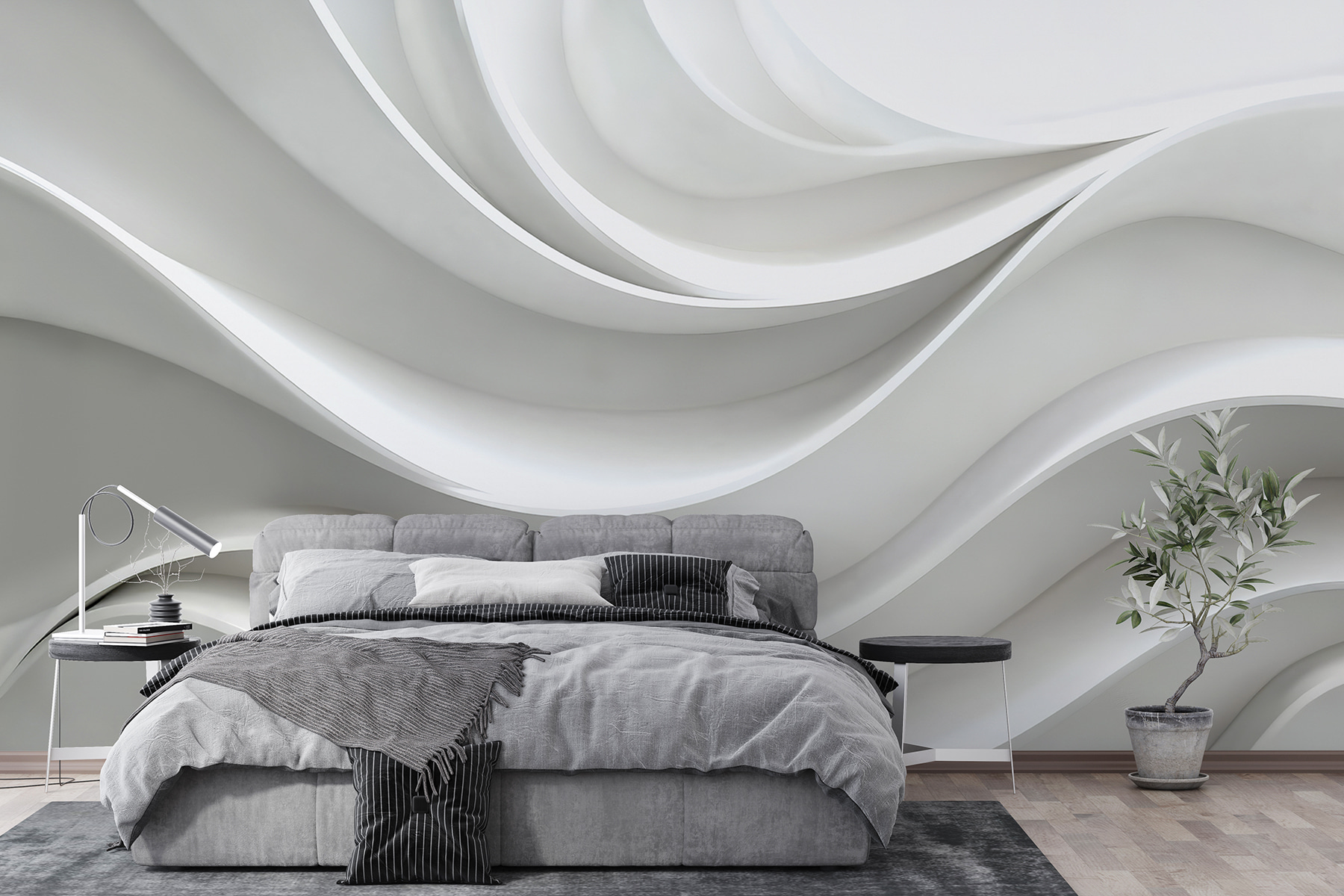 Stel je eens voor dat je een kamer binnenstapt met een muur die aanvoelt als een zachte golf, met uitnodigende rondingen en zachte lijnen. Deze muurschildering is niet zomaar decor; het is alsof je een stuk moderne kunst in je kamer brengt. Stel je voor dat je vrienden ontvangt die hun handen over de krullen laten gaan, verdwaald in dagdromen geïnspireerd door de strakke schoonheid. Het voegt een frisse sfeer toe en verandert zelfs de saaiste muren in iets dat een gesprek op gang brengt. Bovendien is het veelzijdig genoeg om in elke kamer te passen, of het nu een gezellig hoekje is of een ruime woonkamer. Omarm de charme van eenvoud met deze prachtige achtergrond die een vleugje rust en creativiteit toevoegt aan het dagelijks leven. Wie wist dat muren zo expressief konden zijn?