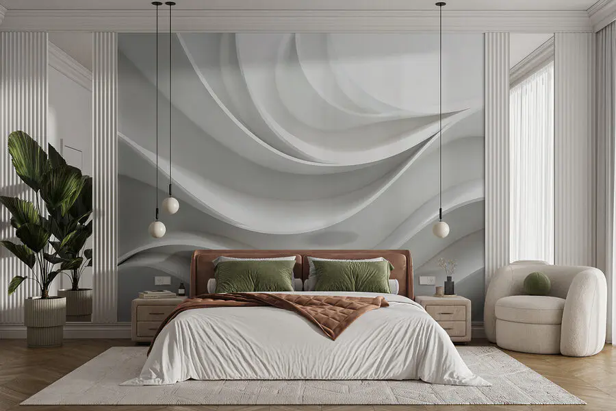 Stel je eens voor dat je een kamer binnenstapt met een muur die aanvoelt als een zachte golf, met uitnodigende rondingen en zachte lijnen. Deze muurschildering is niet zomaar decor; het is alsof je een stuk moderne kunst in je kamer brengt. Stel je voor dat je vrienden ontvangt die hun handen over de krullen laten gaan, verdwaald in dagdromen geïnspireerd door de strakke schoonheid. Het voegt een frisse sfeer toe en verandert zelfs de saaiste muren in iets dat een gesprek op gang brengt. Bovendien is het veelzijdig genoeg om in elke kamer te passen, of het nu een gezellig hoekje is of een ruime woonkamer. Omarm de charme van eenvoud met deze prachtige achtergrond die een vleugje rust en creativiteit toevoegt aan het dagelijks leven. Wie wist dat muren zo expressief konden zijn?