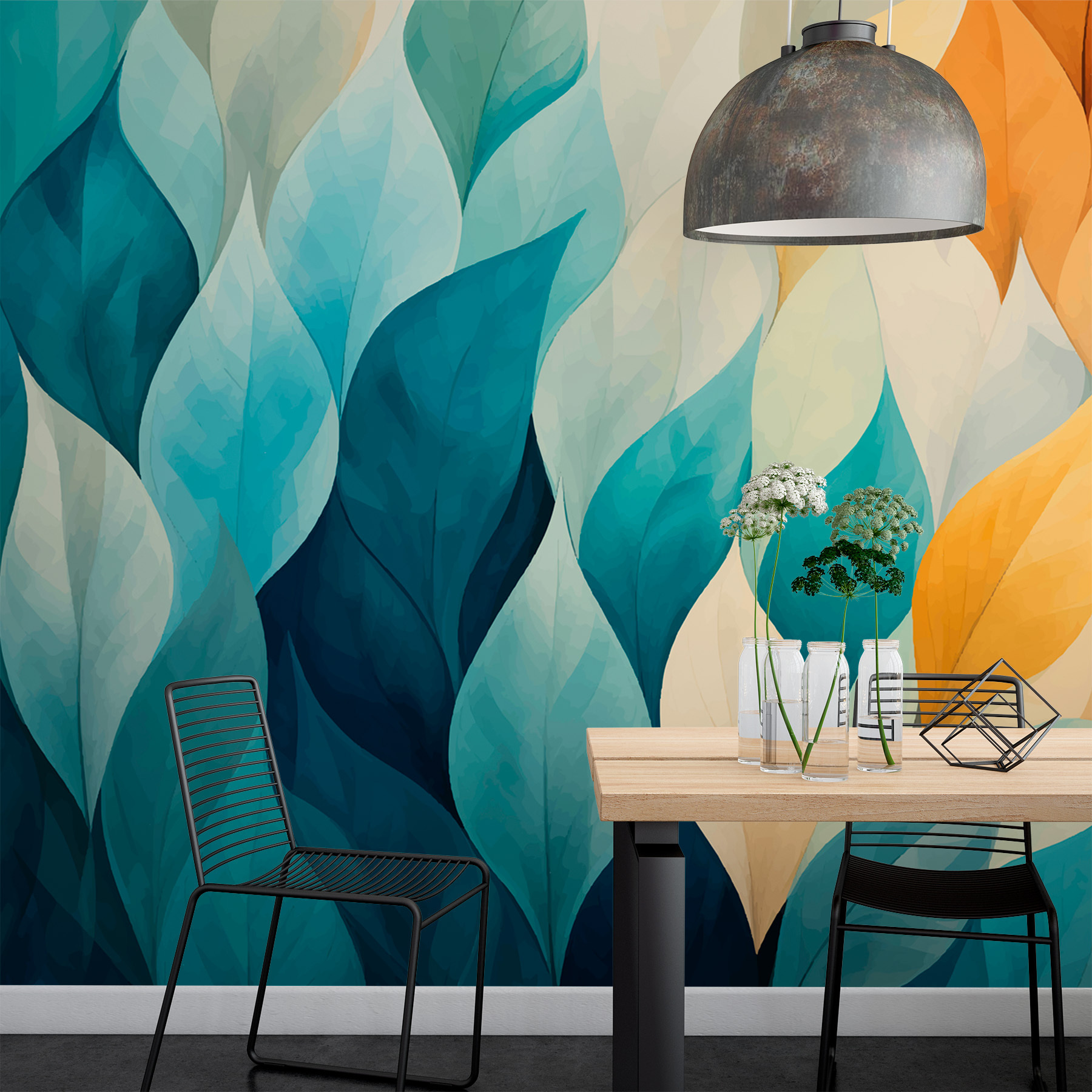 Stel je deze muurschildering voor op je muur – waar natuur en abstracte kunst elkaar ontmoeten in de meest verrukkelijke dans van kleuren. “Colorful Leaves in a Row” voelt aan als een zacht briesje dat door een snoepwinkel waait en een reeks heerlijke tinten achterlaat. Blauw mengt zich met geel en creëert een warme, gezellige sfeer die perfect is om creativiteit te stimuleren of gewoon te chillen met een kopje thee. Het is alsof je een natuurwandeling in je woonkamer maakt, zonder de vervelende insecten! Elk blad lijkt geheimen van rust en creativiteit te fluisteren. Een snelle oplossing voor lege muren!