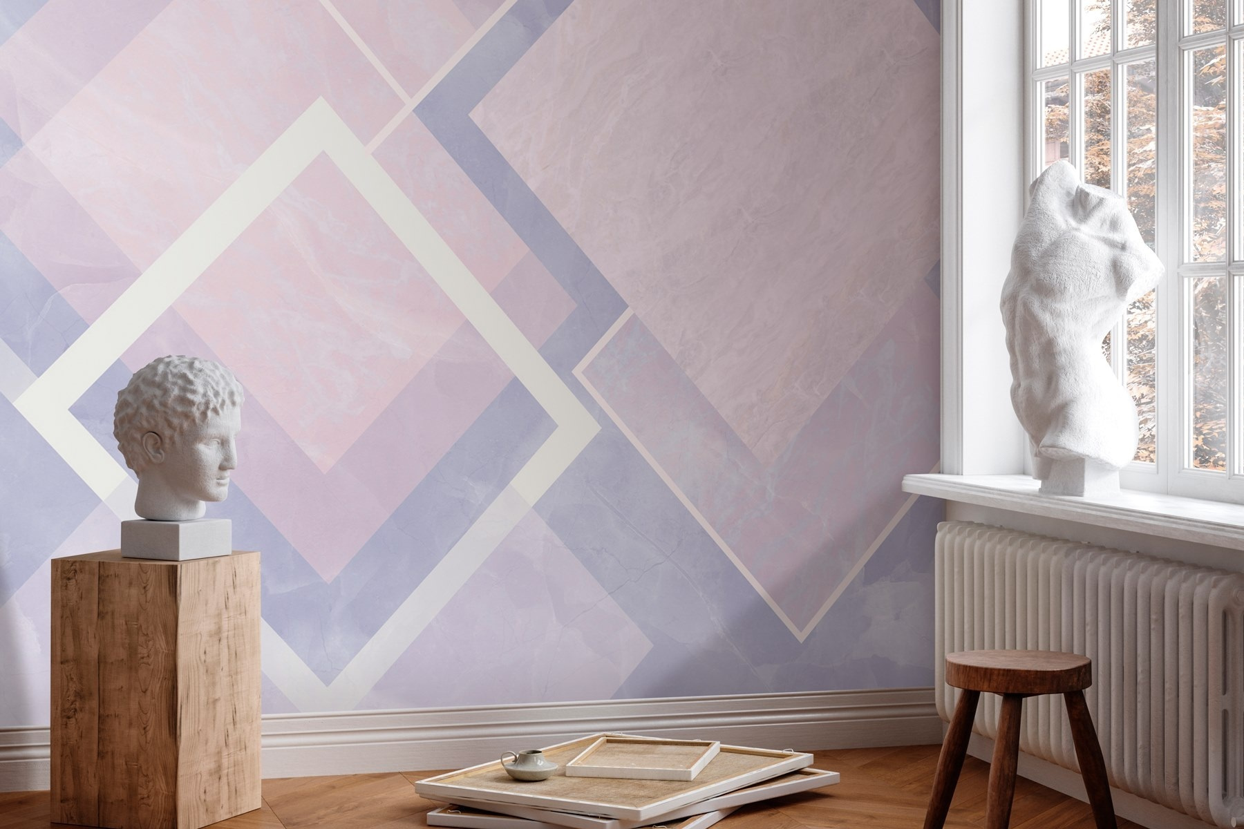 Transformeer je ruimte met deze prachtige muurschildering met zachte pastelkleurige geometrische patronen. Het is als een rustgevende omhelzing voor je muren – perfect om een rustig toevluchtsoord te creëren uit de chaos van het dagelijkse leven. Stel je voor: thee drinken op een gezellige middag, omringd door zachte tinten die je doen denken aan suikerspinachtige zonsondergangen. Elke vorm danst over de muur en zorgt voor een gevoel van harmonie waardoor elke kamer uitnodigend aanvoelt. Of het nu een leeshoekje is of die onverwachte plek die je wilt opknappen, deze muurschildering voegt precies het juiste tintje toe. Wie zou er niet graag ontsnappen naar een geometrisch wonderland?