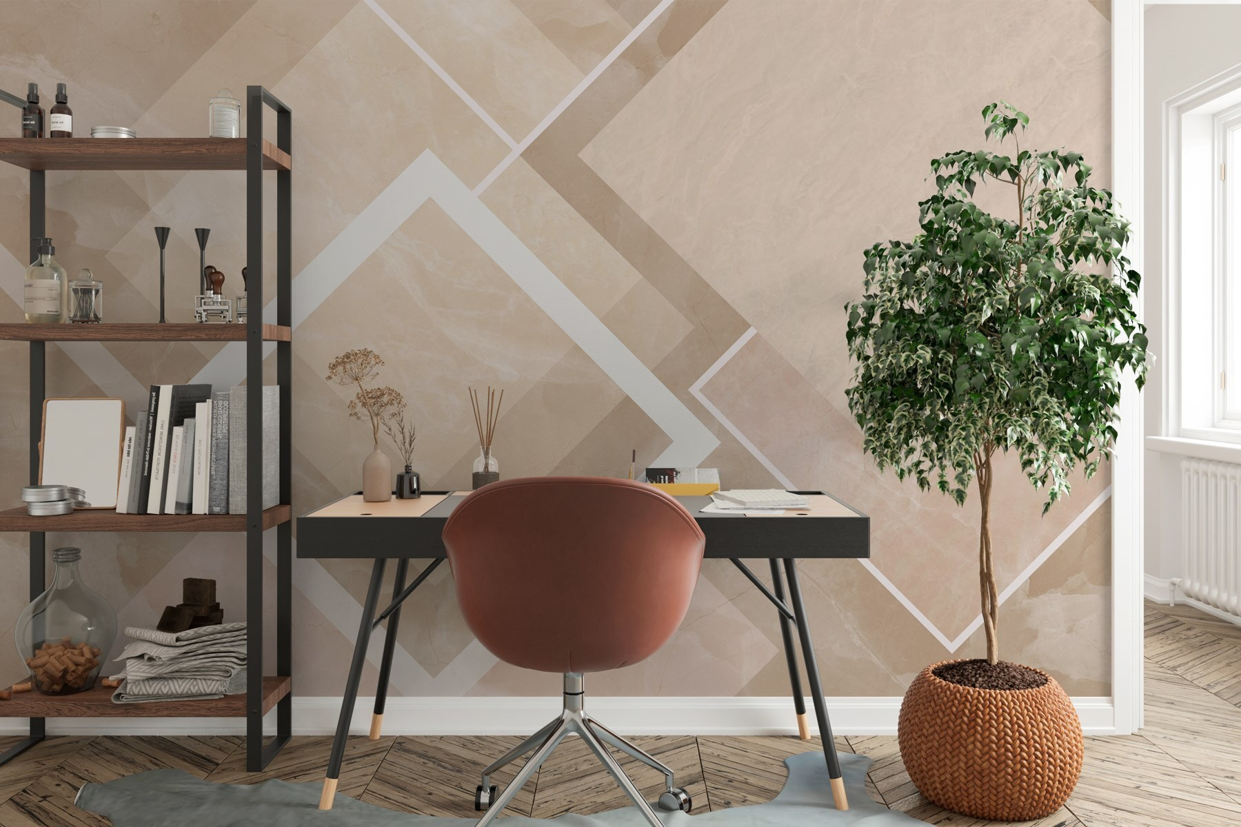 Transformeer elke kamer met deze prachtige muurschildering met subtiele geometrische vormen in zachte tinten. Het is als een zachte knuffel voor je muren, die een uitnodigende sfeer creëert die de sfeer direct kalmeert. Stel je voor dat je koffie drinkt terwijl je je koestert in de warme pastelkleuren die samen lijken te dansen. Deze muurschildering fluistert elegantie maar schreeuwt niet om aandacht – perfect voor mensen die houden van een mix van moderne flair en sereniteit. De muurschildering is veelzijdig genoeg om een gezellige leeshoek of een chique eethoek te verfraaien. Breng je ruimte tot leven en laat je muren een verhaal van stijl en comfort vertellen.